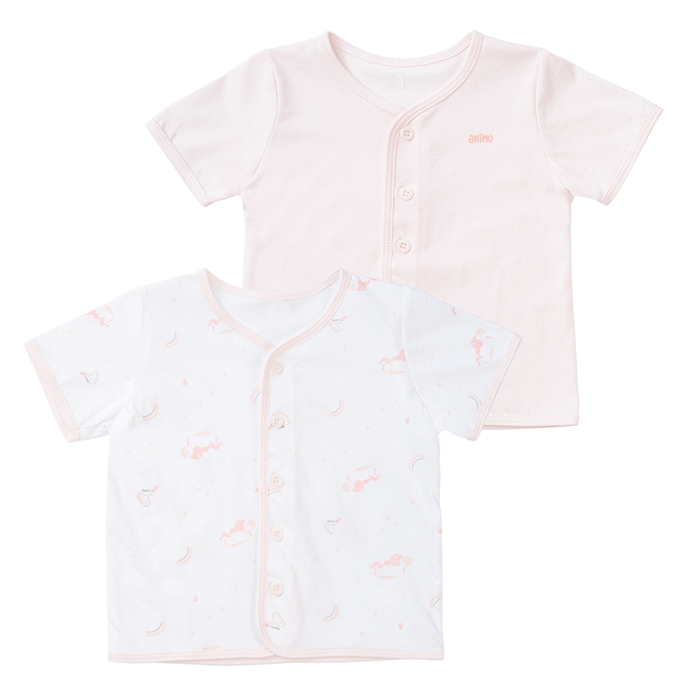 Cặp áo sơ sinh cài giữa tay ngắn Animo KV223017 (NB-12M,Trắng họa tiết_Hồng)