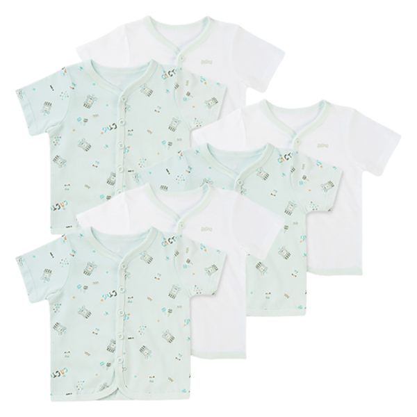 Combo 3 Cặp áo sơ sinh cài giữa tay ngắn Animo NB422055 (NB,xanh ngọc-trắng)