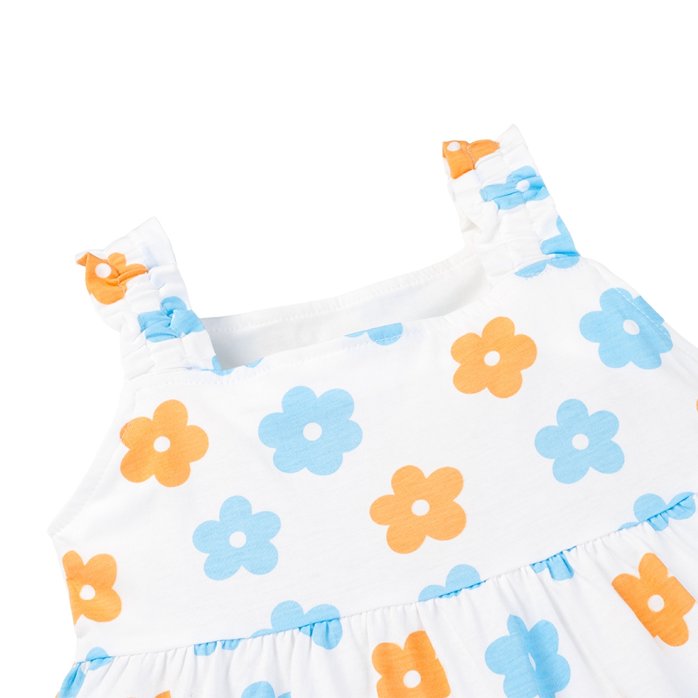 . Họa tiết hoa xanh cam tươi sáng, bé mặc lên ảnh rất xinh,