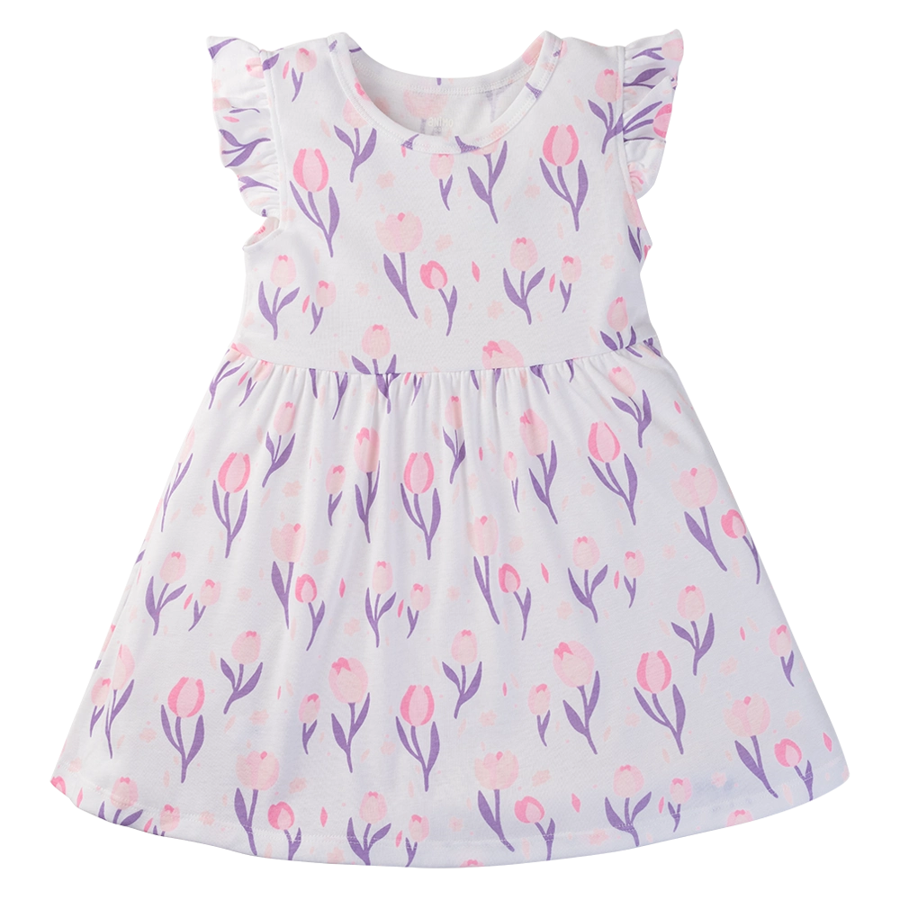 Đầm bé gái được làm từ 100% vải cotton mềm mại, có khả năng thấm hút tốt đảm bảo sự thoải mái khi mặc.
