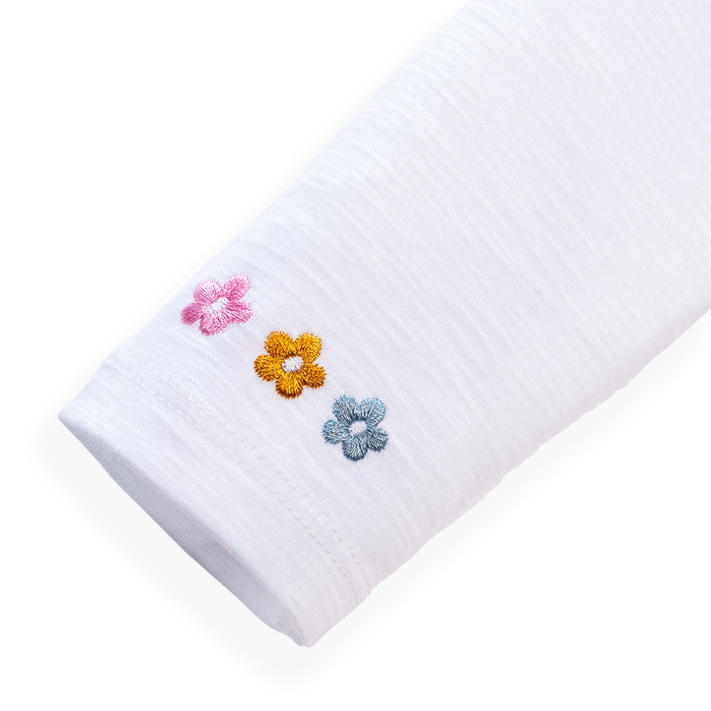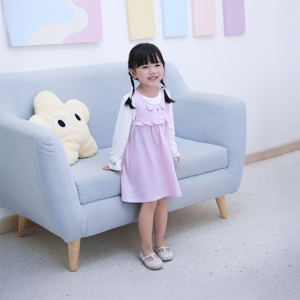 . Dáng đầm xòe nhẹ kết hợp cùng tay dài vừa thoải mái, vừa giúp giữ ấm cơ thể bé.