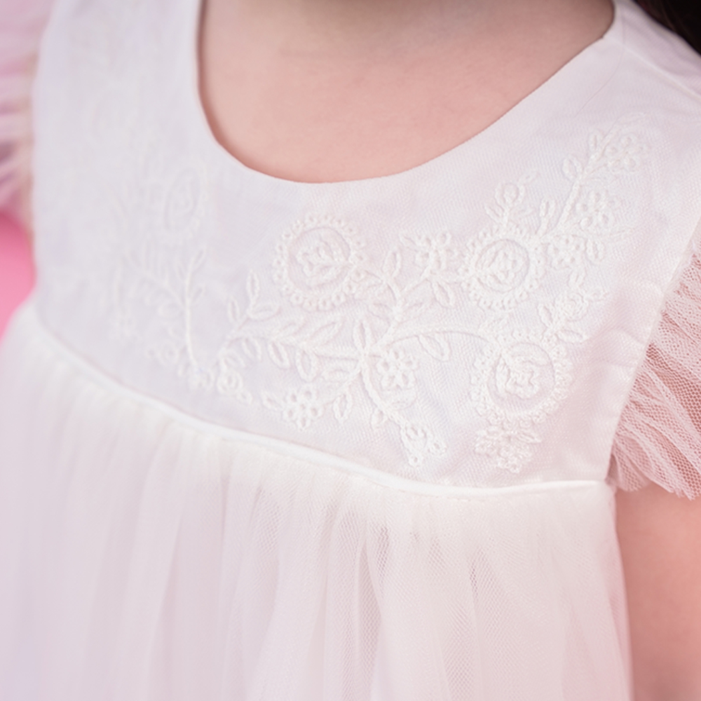 . Tông màu trắng nhẹ nhàng, dễ dàng phối hợp cùng phụ kiện giúp tăng phần dịu dàng cho bé; . Đường may chắc chắn, đường cắt tinh tế giúp sản phẩm có độ bền cao.