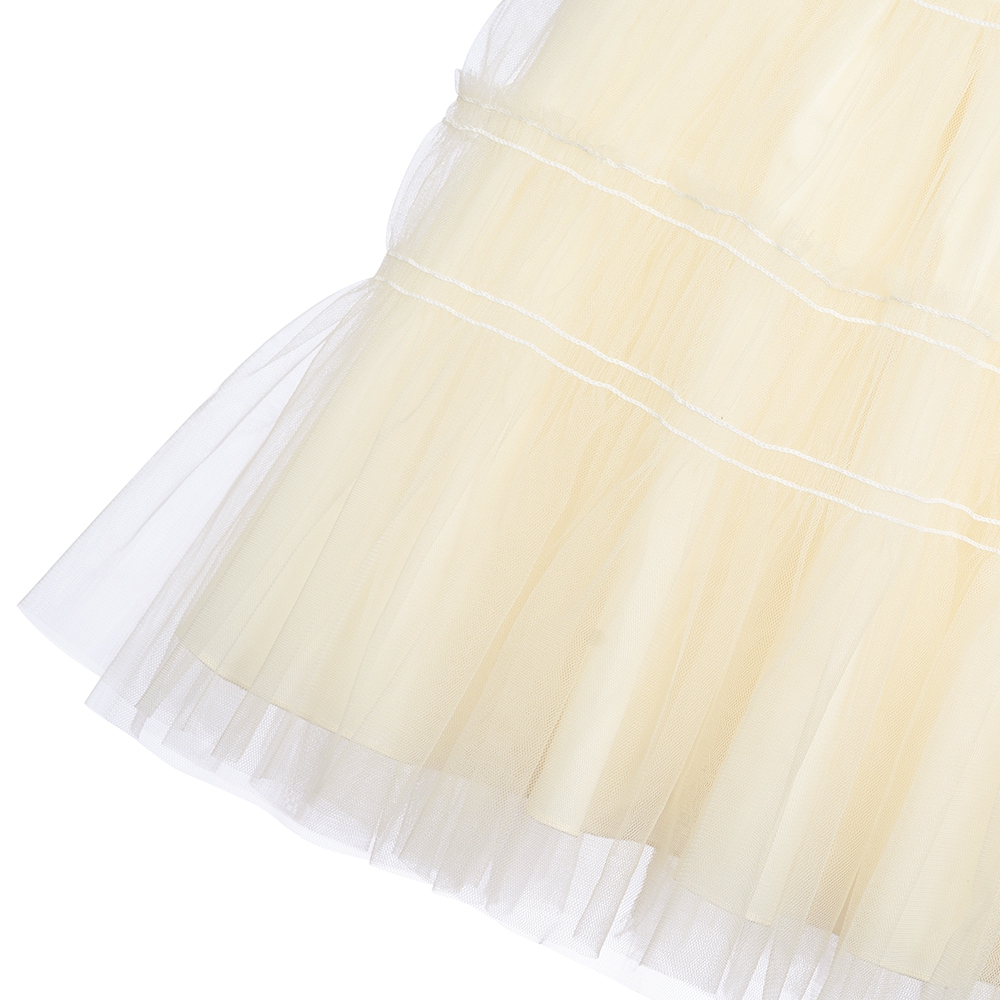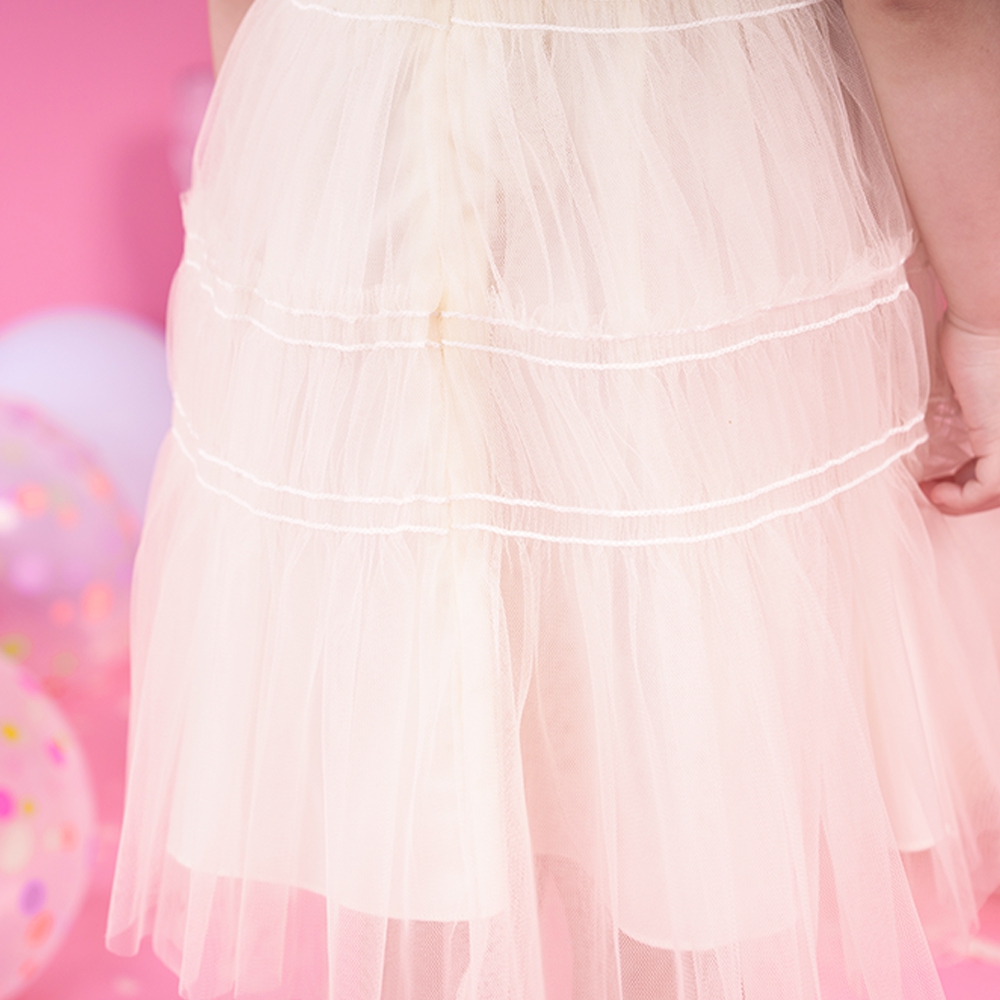 . Thiết kế đầm xoè nhiều tầng với màu trắng tạo nên vẻ dễ thương, nữ tính cho bé;