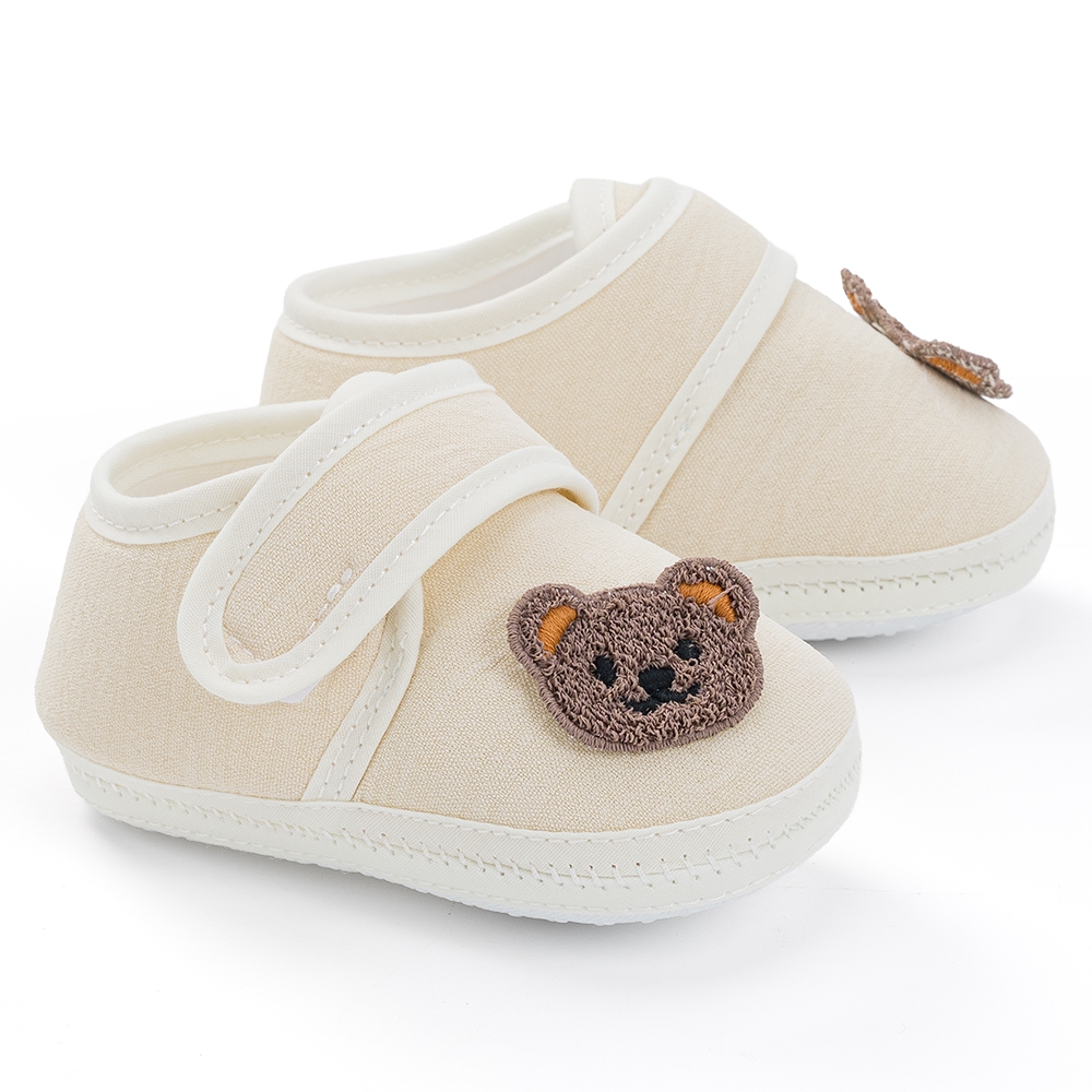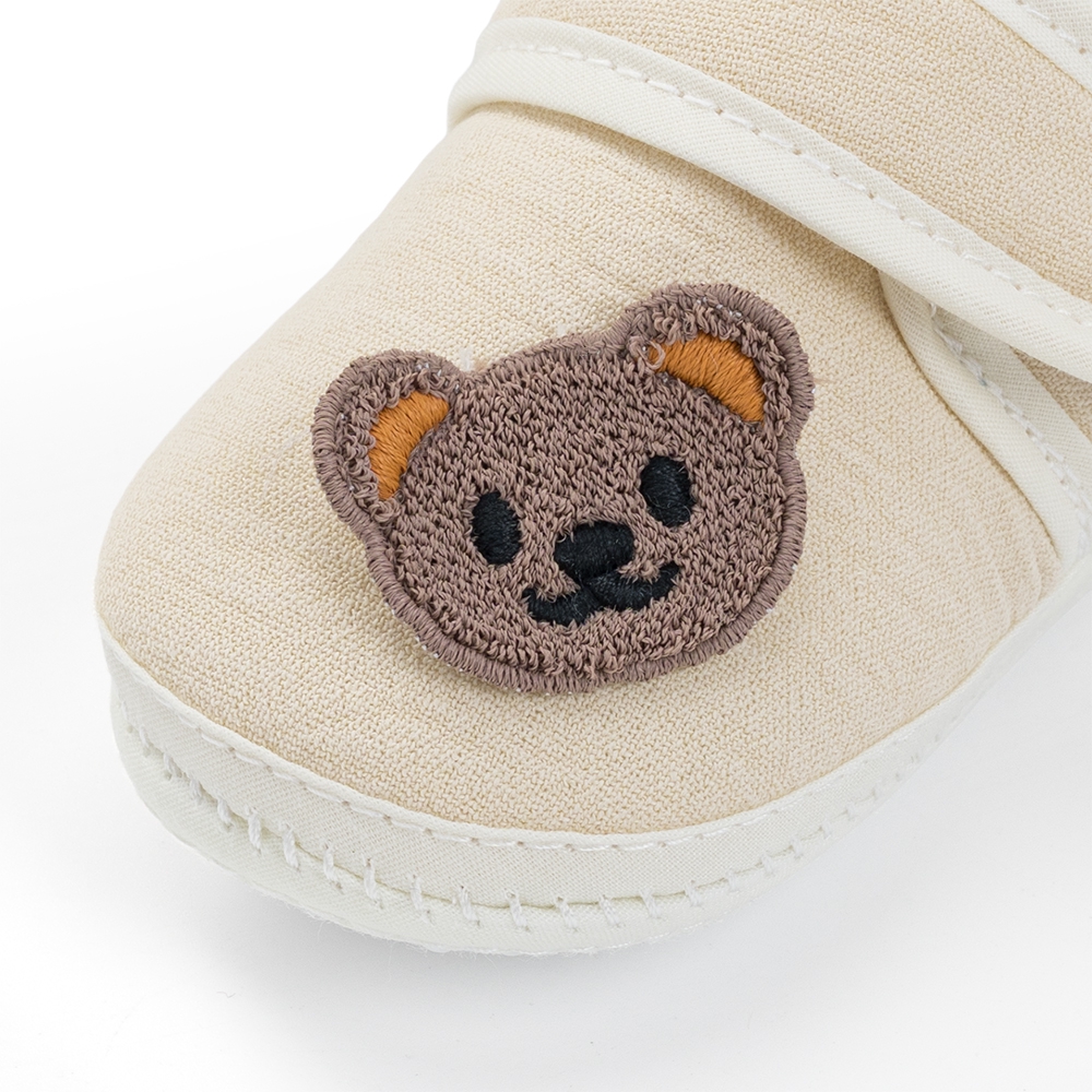 . Hình gấu thêu nổi tinh xảo ở mũi giày tạo điểm nhấn dễ thương, bé mang vào rất xinh.