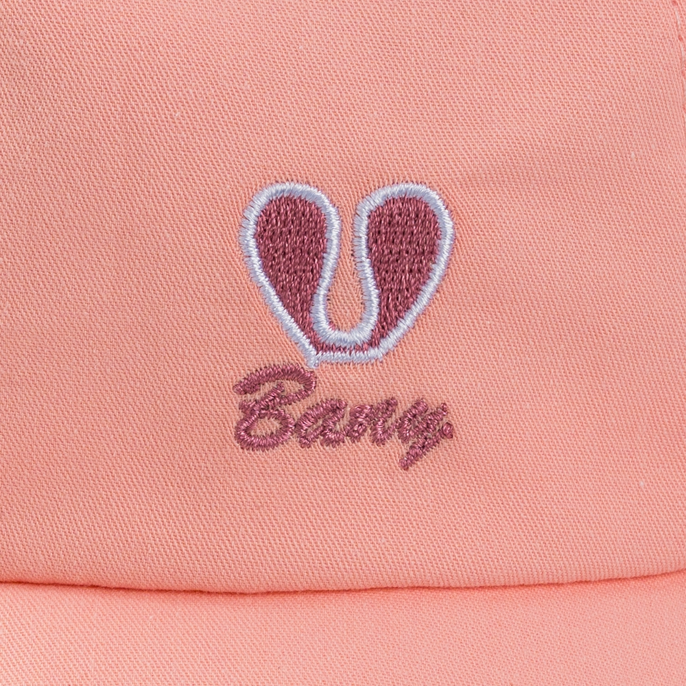 Thêu tai thỏ tinh tế, gam tím nhạt nổi bật trên nền hồng pastel, mang đến vẻ đáng yêu và thanh lịch mà không quá sặc sỡ.
