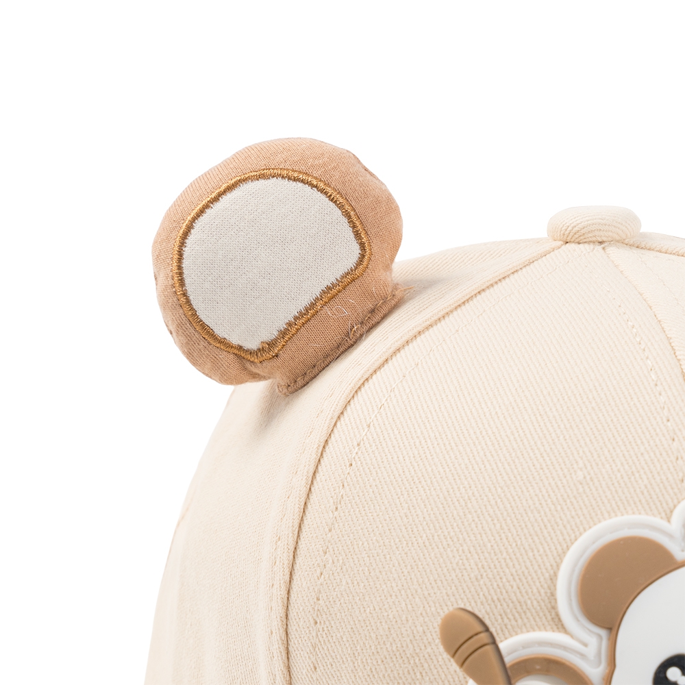 Phần trên nón được trang trí thêm hai tai gấu 3D dựng đứng với viền nâu, tăng thêm nét ngộ nghĩnh cho khuôn mặt bé.