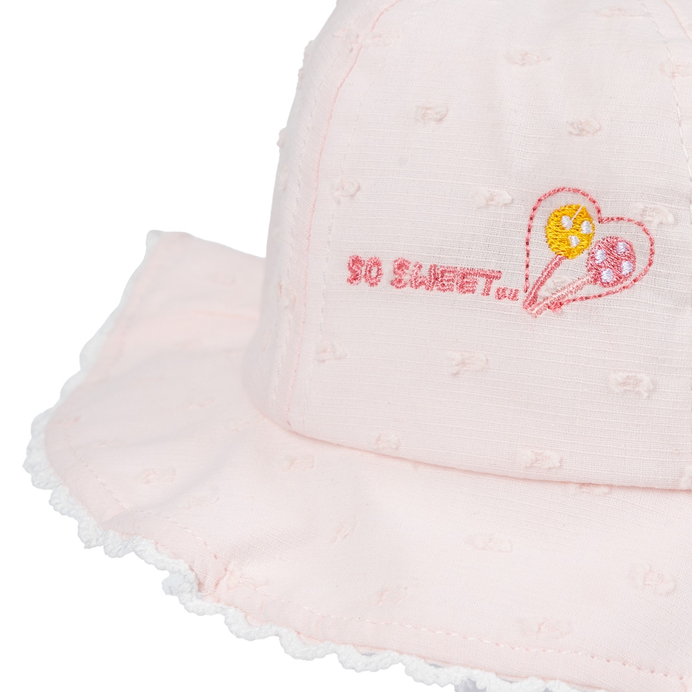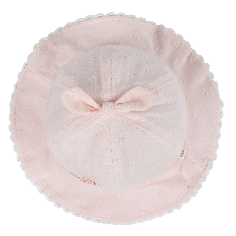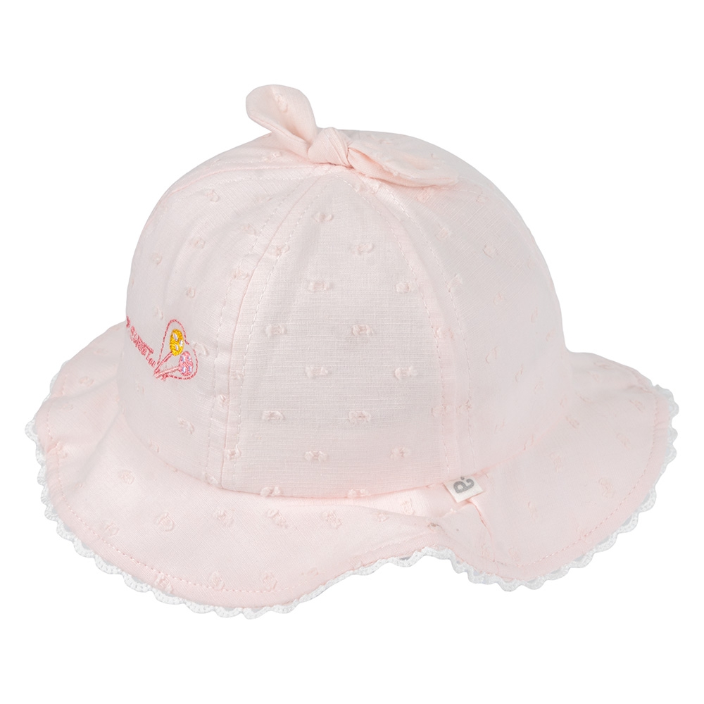 . Đỉnh nón có nơ nhỏ kết hợp cùng hoạ tiết dễ thương giúp tạo nét nữ tính và đáng yêu cho bé.
