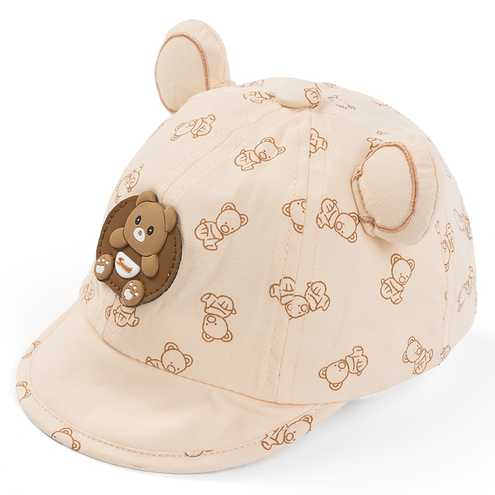Nón lưỡi trai Animo A2508_MN013 nổi bật với tông màu be nhẹ nhàng cùng họa tiết gấu ngộ nghĩnh trải đều khắp bề mặt. Form nón 46cm phù hợp cho bé 0–12M, ôm đầu vừa vặn và mang lại sự thoải mái khi bé đội trong nhà hay ra ngoài.