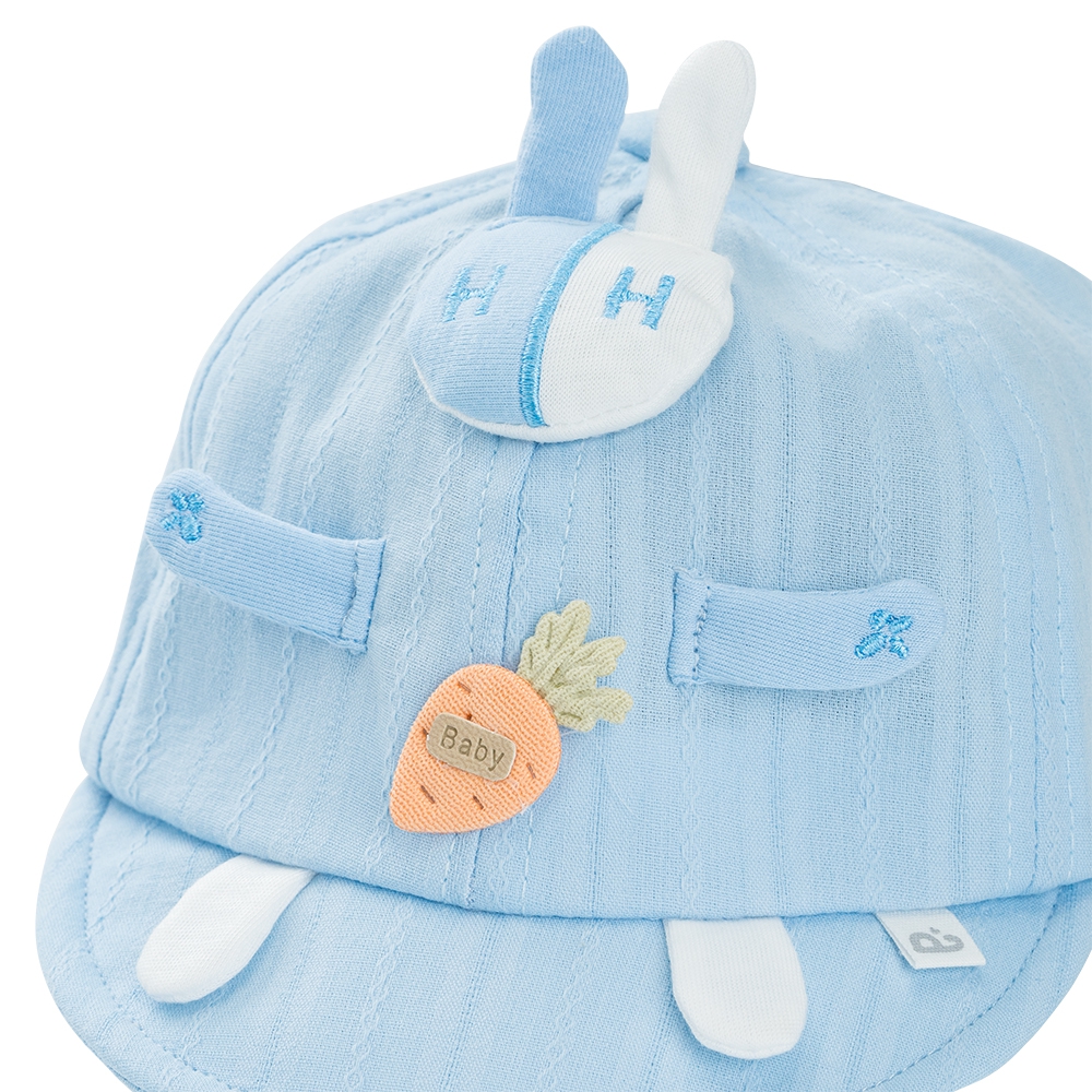 . Các chi tiết được đính trên nón nhìn như hình dáng một chú thỏ đang ôm cà rốt vô cùng đáng yêu;