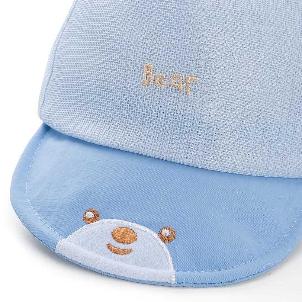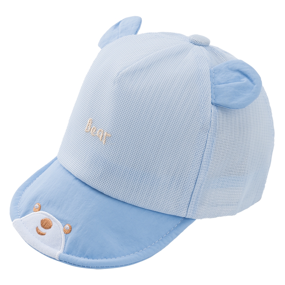 Nón lưỡi trai bé trai 1-3Y Animo A2507_JK021 (48cm, Xanh) mang đến vẻ ngoài tươi sáng và dễ thương với họa tiết gấu thêu cùng đôi tai 3D ngộ nghĩnh. Phần thân nón lưới thoáng khí kết hợp lưỡi trai bo tròn thêu mặt gấu xinh xắn, vừa giúp che nắng hiệu quả vừa tạo sự thoải mái cho bé khi vui chơi ngoài trời.