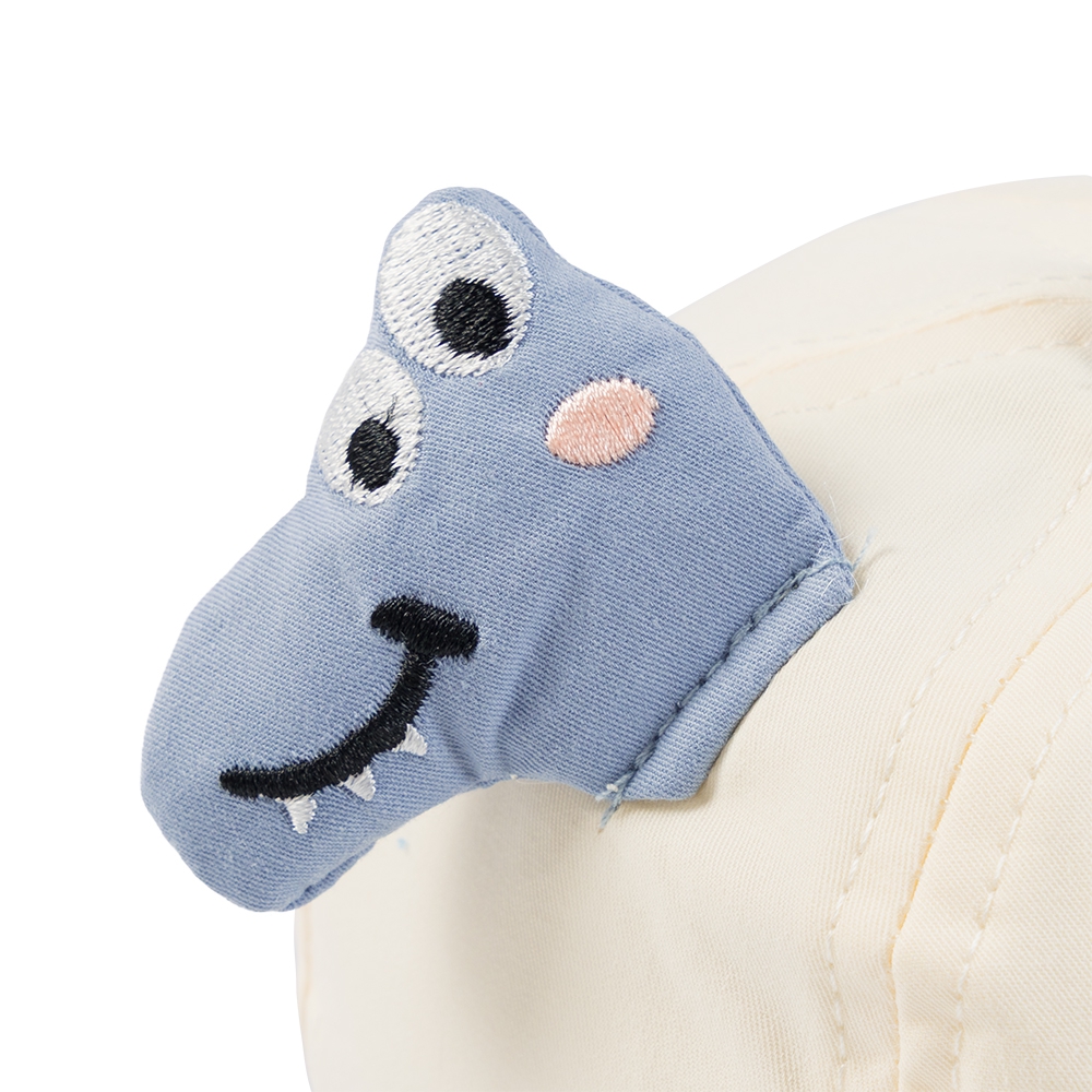 Thiết kế 3D sáng tạo: Nón được cách điệu thành một chú khủng long nhỏ với phần đầu, đuôi nhồi bông gắn nổi hai bên và dãy gai mềm chạy dọc trên đỉnh nón.