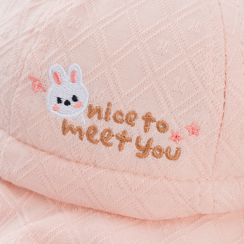 Thiết kế tai thỏ 3D nổi bật cùng dòng chữ thêu “Nice to meet you” xinh xắn, tăng thêm phần dễ thương.