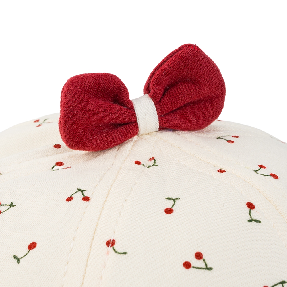 Nơ đỏ 3D ở đỉnh nón, điểm nhấn tạo phong cách điệu đà, phù hợp cho bé gái thích vẻ ngoài dễ thương.