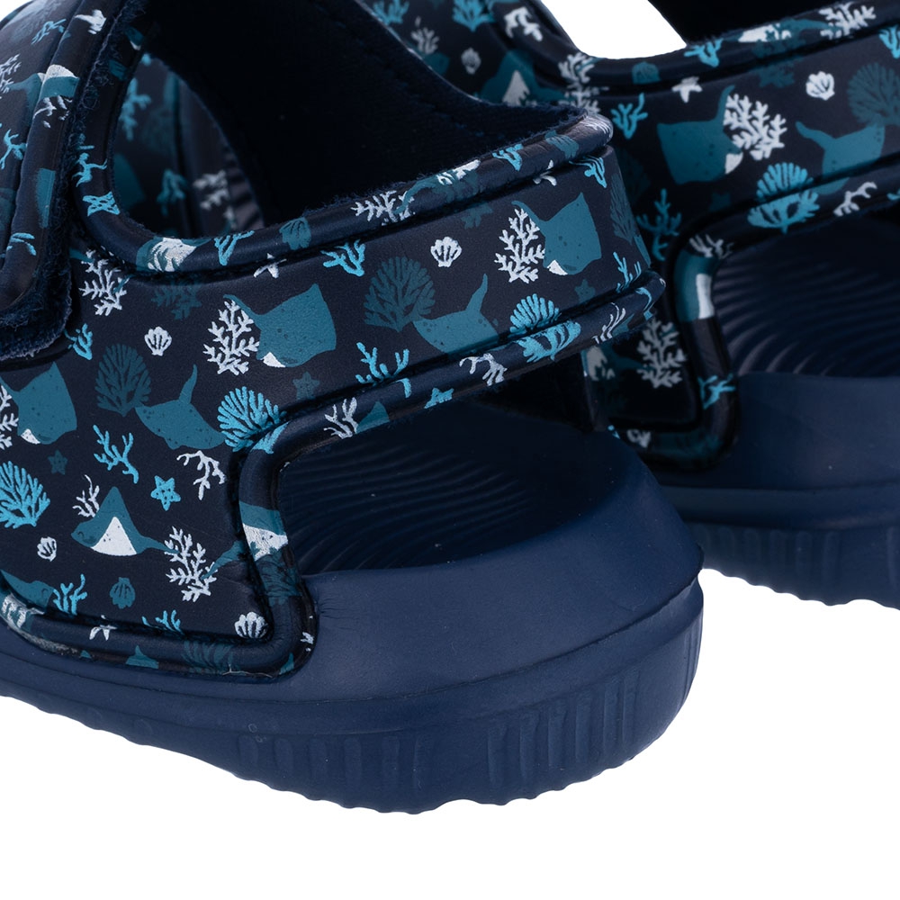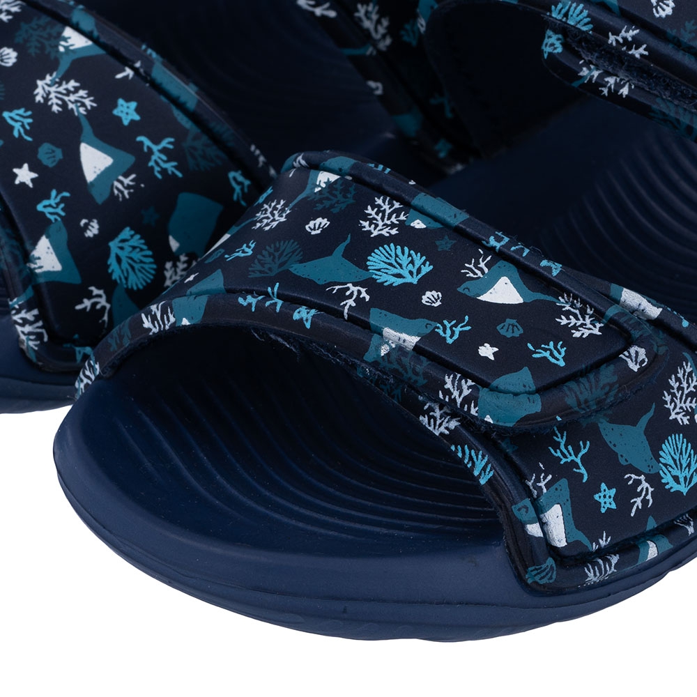 . Phần quai dán được đính chắc chắn, dễ dàng điều chỉnh kích cỡ sao cho vừa với chân; . Họa tiết độc đáo được in sắc nét cùng màu xanh tạo nên vẻ năng động, phù hợp với các bé trai.