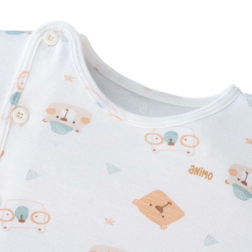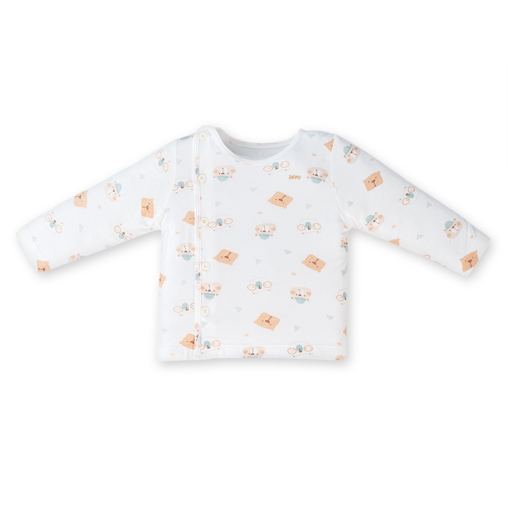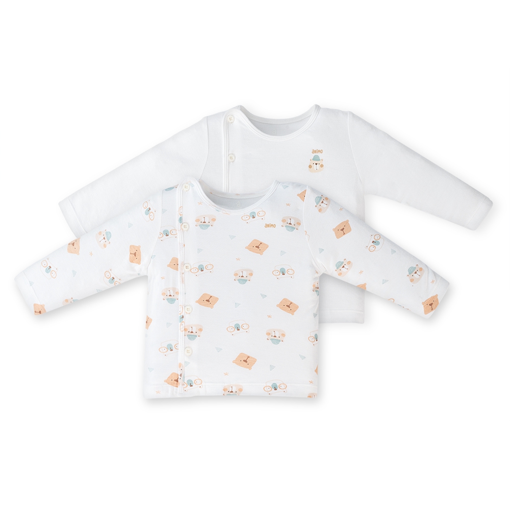 Set 2 áo sơ sinh cài chéo tay dài Animo Easy KV0724004 (NB,Trắng-HT Gấu)