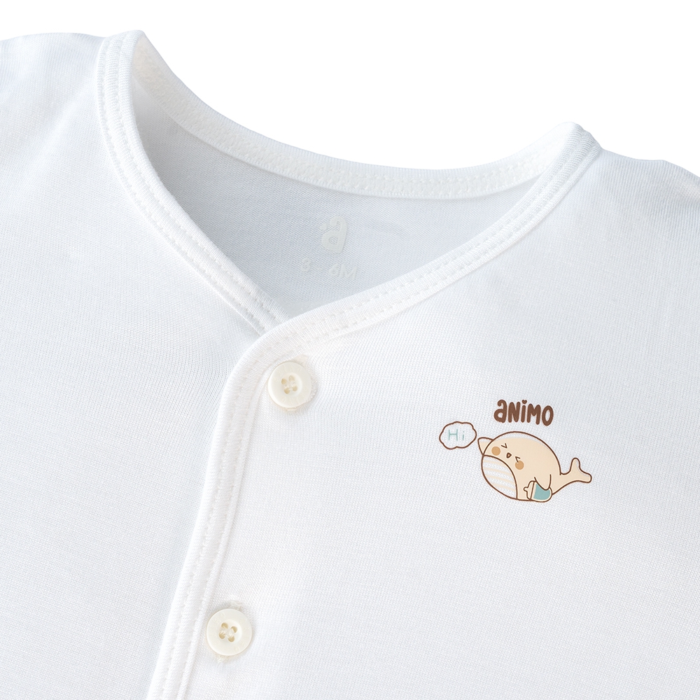 Set 2 áo sơ sinh cài giữa tay dài Animo Easy KV0724003 (0-9M,Trắng-HT Cá)