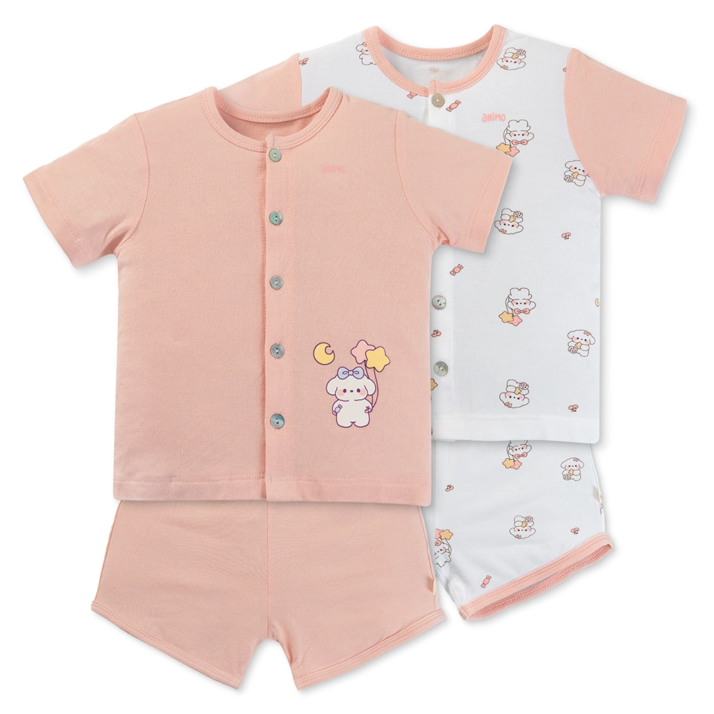 Set 2 Bộ kháng khuẩn Modal ngắn Animo BMC0525024 (0-24M,Dâu-trắng,NN06)