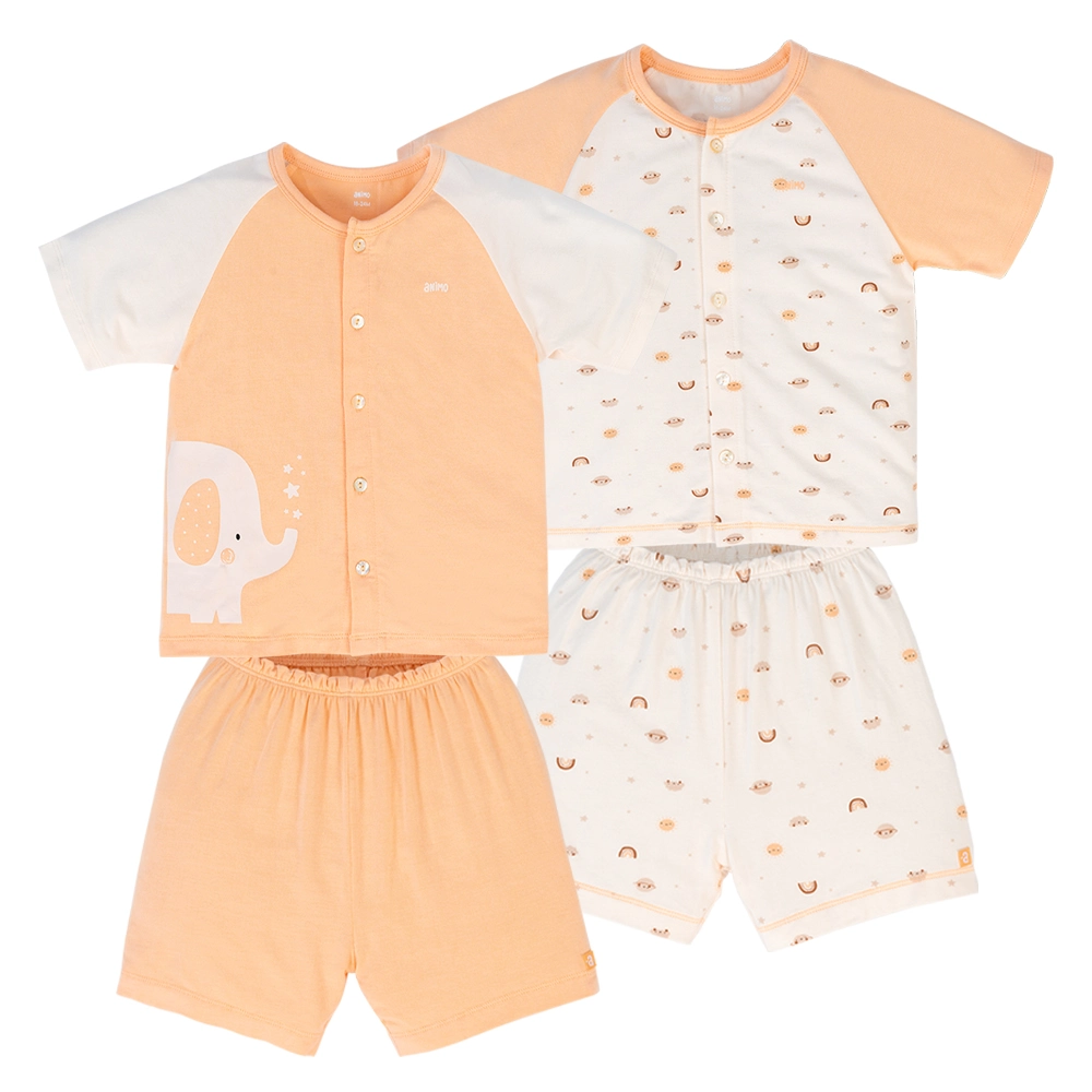 Set 2 Bộ kháng khuẩn Modal ngắn Animo VD0724027 (0-24M,Trắng phối cam)