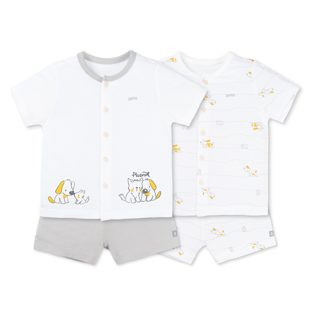 Set 2 Bộ kháng khuẩn Modal ngắn Animo VD0725006 (0-24M, Xám-trắng, NN06)