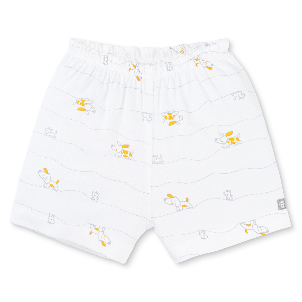 Quần short co giãn nhẹ, ôm vừa vặn, giữ dáng mà vẫn mang lại sự thoải mái cho bé khi nằm, bò hoặc đạp chân.