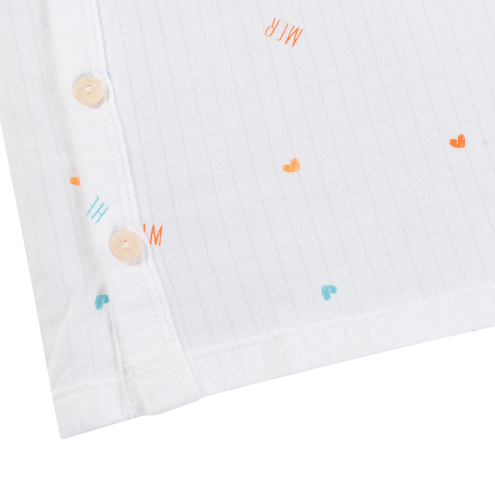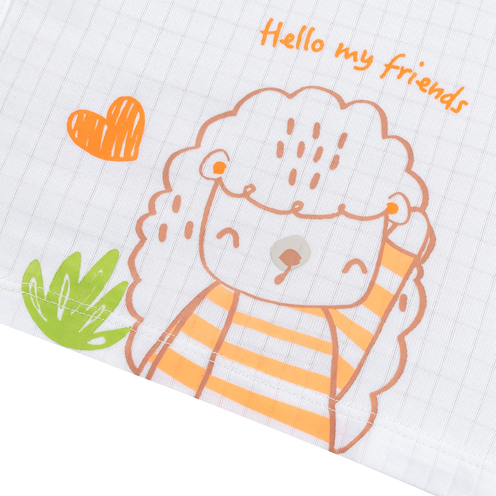 Màu cam trắng tươi sáng kết hợp họa tiết sư tử "Hello my friends" đáng yêu, kích thích thị giác và mang lại vẻ ngoài năng động cho bé.