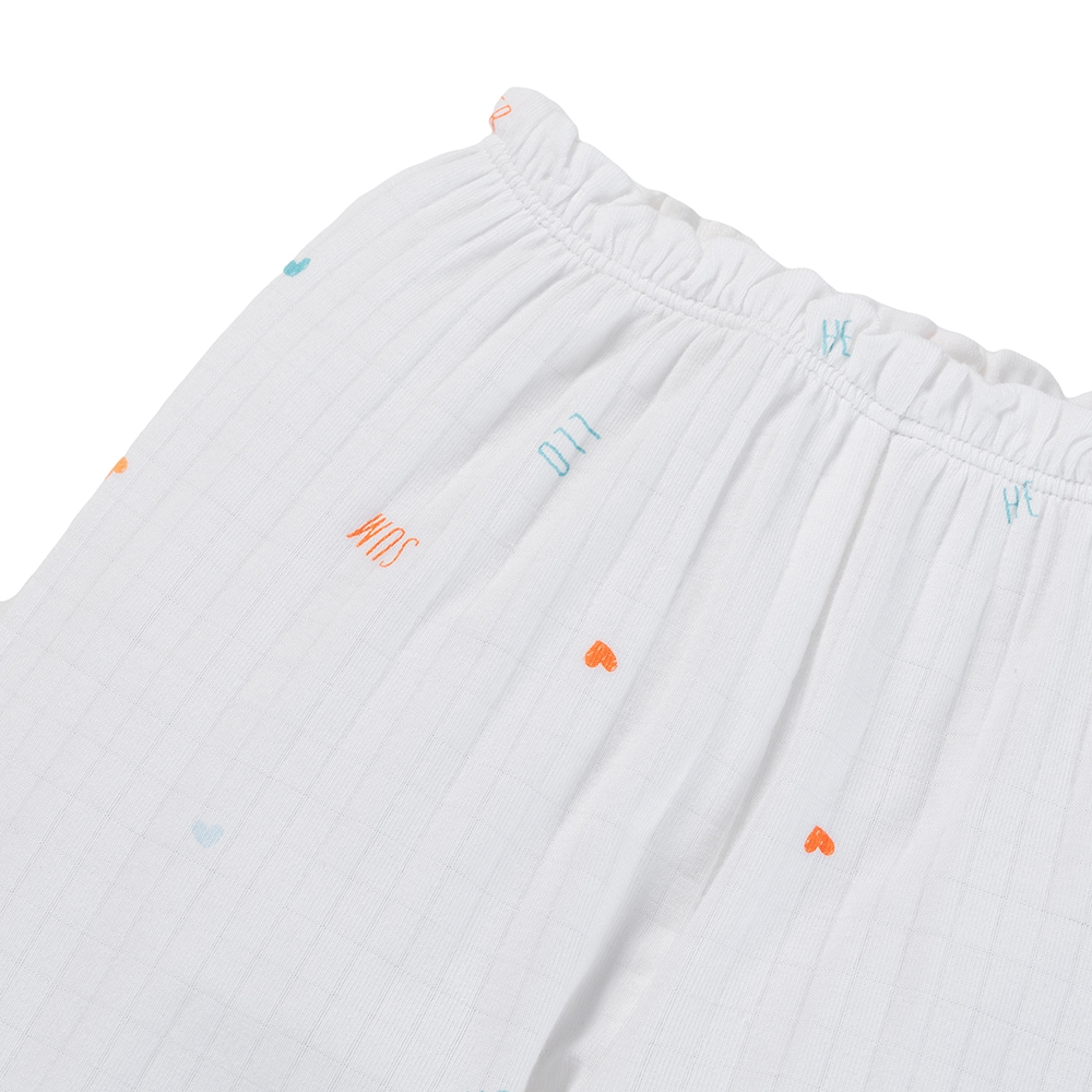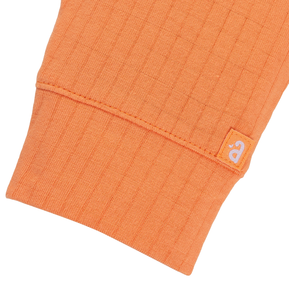 Quần và tay áo được bo gấu nhẹ nhàng, giúp giữ ấm cơ thể bé khi ngủ máy lạnh và ngăn ống quần bị co lên khi bé vận động.