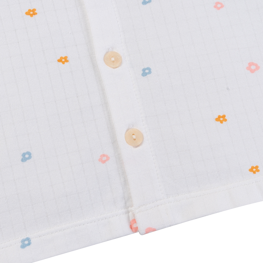 Thiết kế áo cài nút giữa chạy dọc thân áo giúp ba mẹ dễ dàng thao tác mặc và thay đồ cho bé mà không làm bé khó chịu.