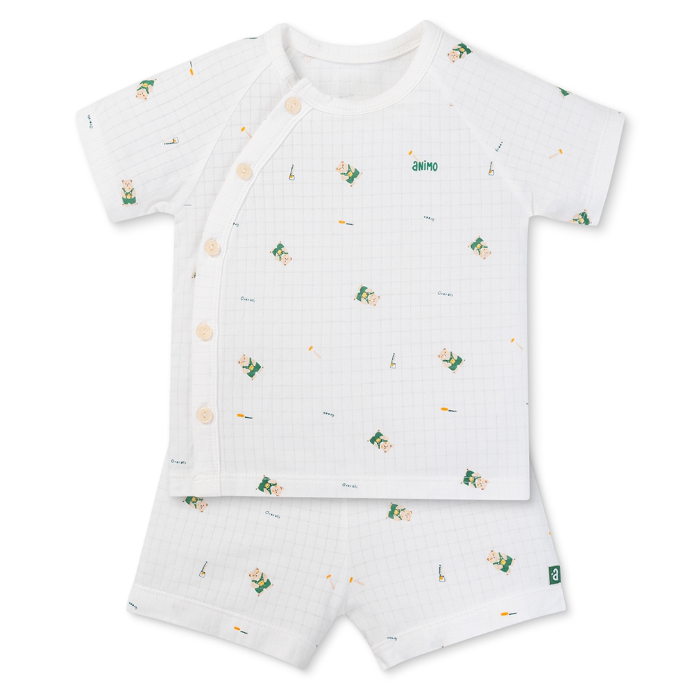 Set 2 bộ rayon chống muỗi ngắn Animo VD1125033 (0-24M, Trắng-xanh lá đậm, TT06)