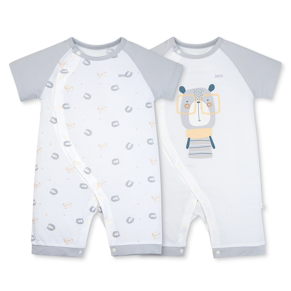 Set 2 Bodysuit kháng khuẩn Modal đùi Animo BMC0925011 (0-12M, Xám-trắng, TT06)