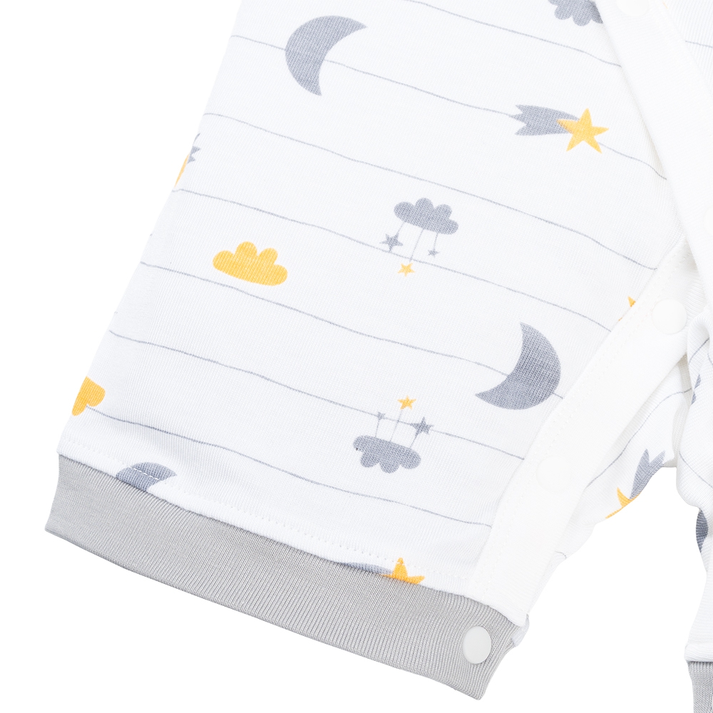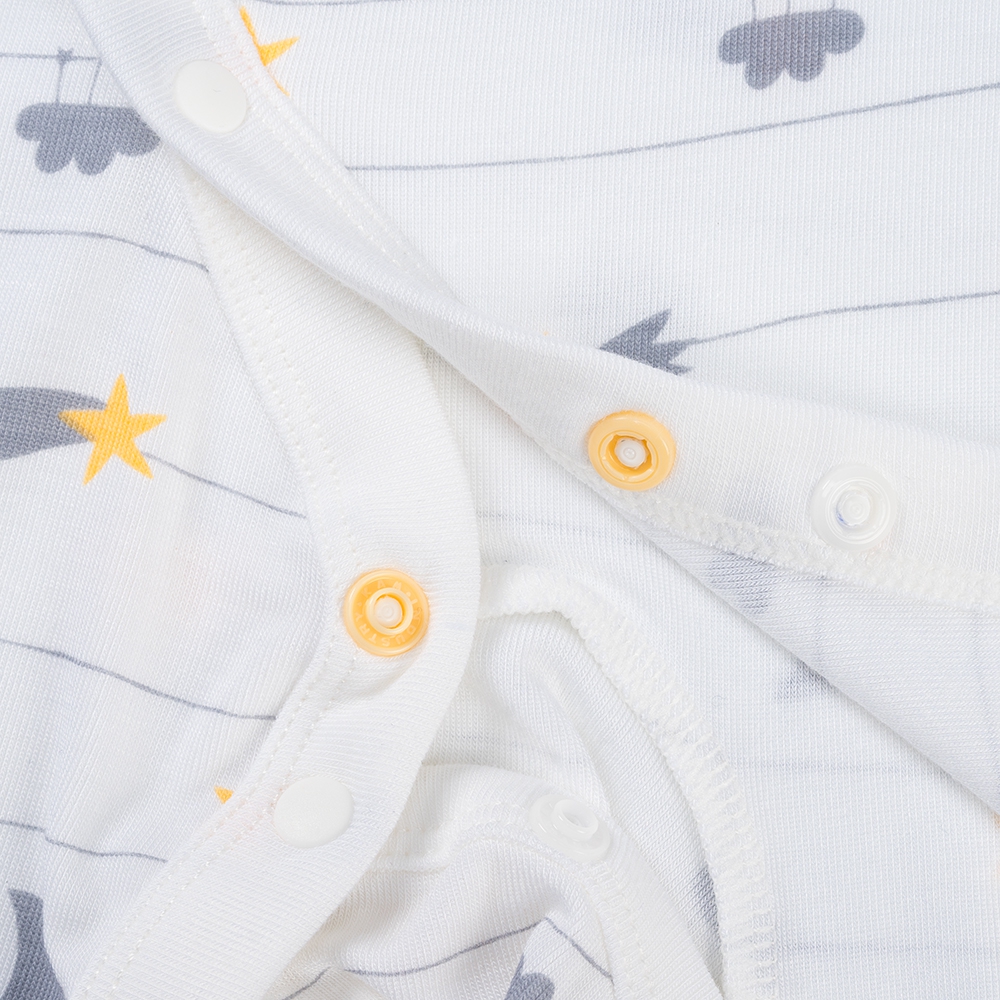 . Bodysuit được trang bị nút bấm dài từ cổ đến đùi, giúp ba mẹ dễ dàng thay đồ cho bé.