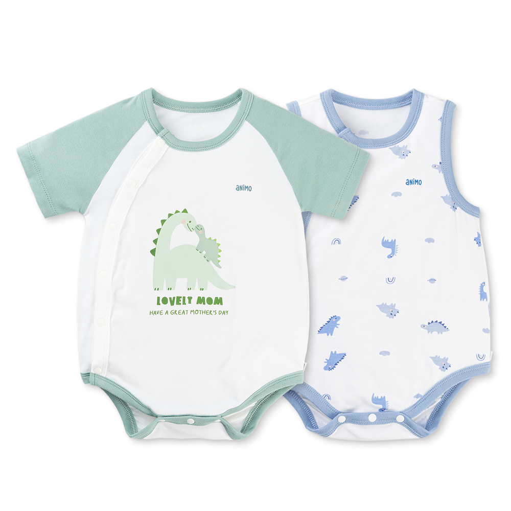 Set 2 Bodysuit kháng khuẩn Modal tam giác Animo VD0825022 (0-9M,Lá-dương,DD06)