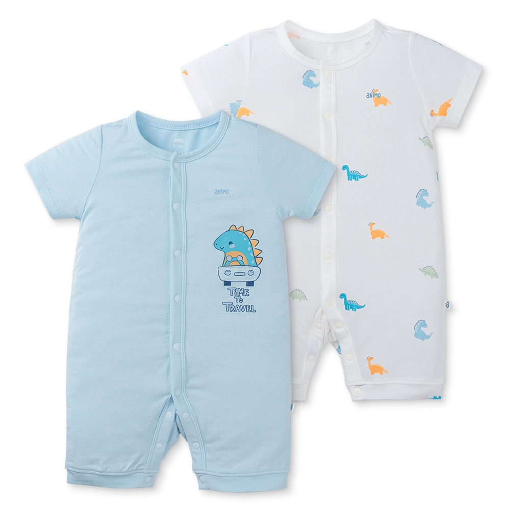 Set 2 Bodysuit modal kháng khuẩn đùi Animo VD0225019 (0-12M,Xanh-trắng,TT06)