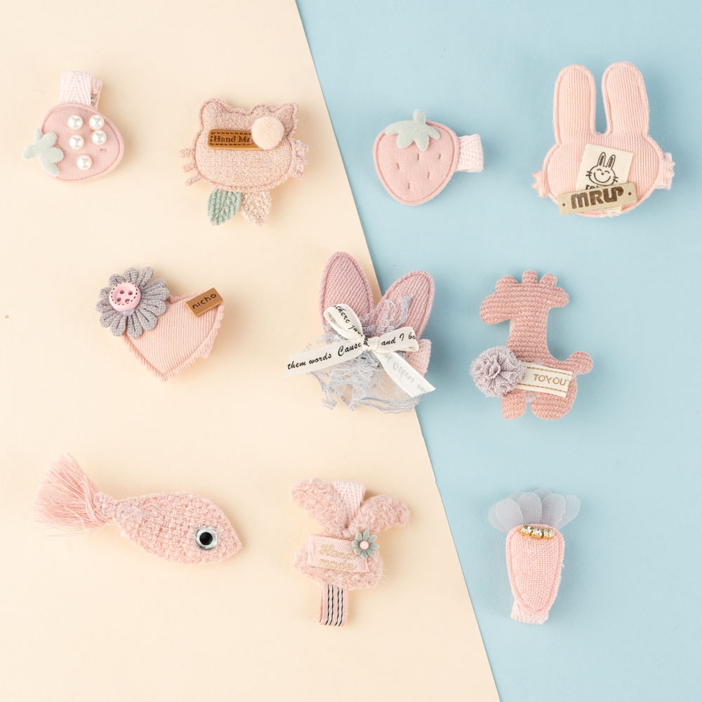 . Bộ sản phẩm bao gồm 10 kẹp tóc với 10 hoạ tiết khác nhau cực kỳ dễ thương;