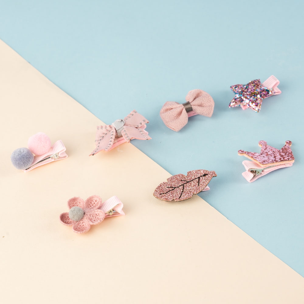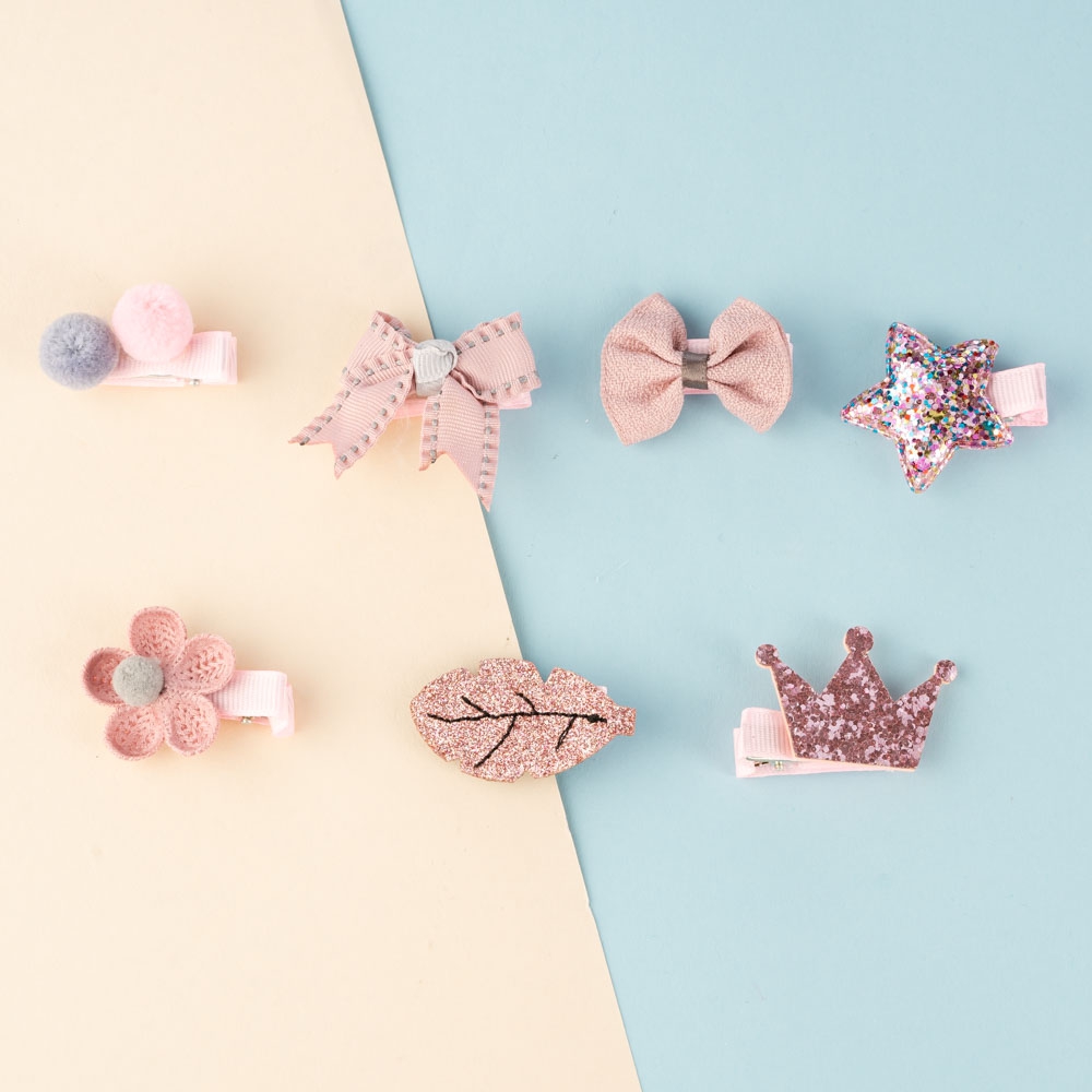 . Bộ sản phẩm bao gồm 7 kẹp tóc với 7 hoạ tiết khác nhau cực kỳ dễ thương;