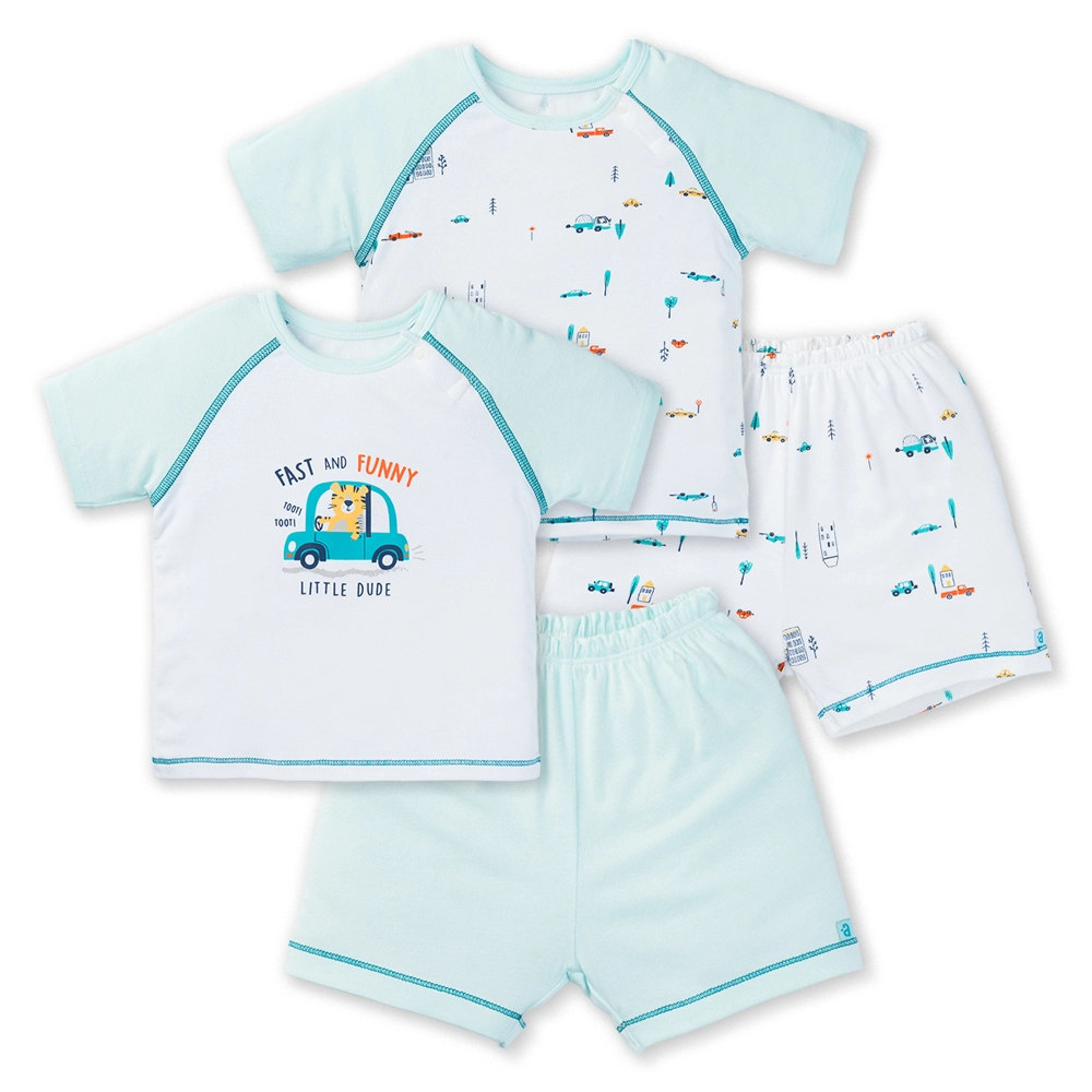 Set 2 Bộ kháng khuẩn Modal ngắn Xe hơi Animo VD1023003 (0-24M,Xanh ngọc)