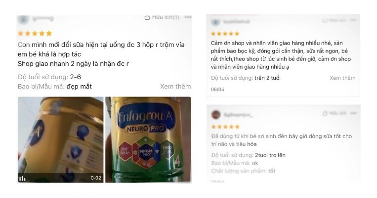 3. Ba mẹ nói gì về sữa Enfagrow A+ NeuroPro 4 2Flex?