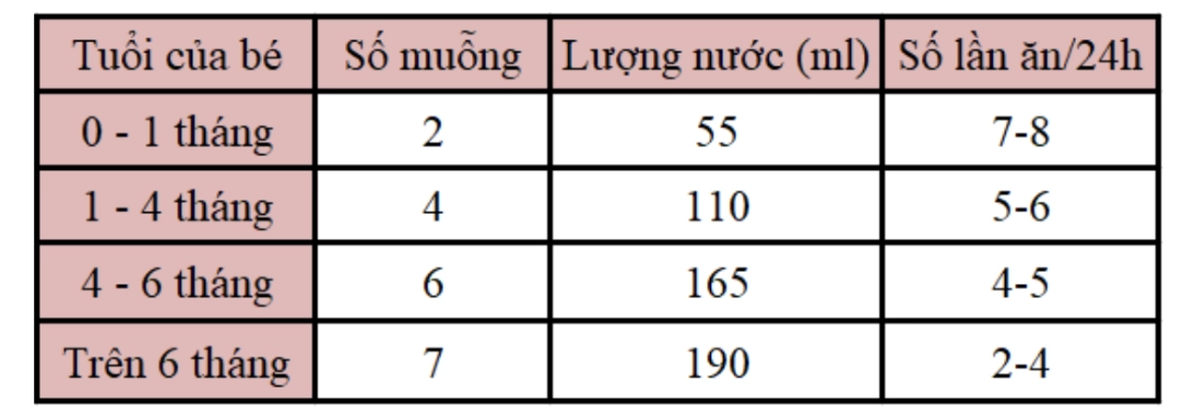 Đầu tiên, đối với trẻ sơ sinh, mời ba mẹ xem chi tiết lượng sữa bé cần ở từng tháng tuổi ngay ở bảng dưới đây: