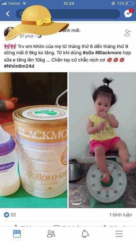 “Từ tháng thứ 6 đến tháng thứ 9, em Nhím của mẹ không tăng được cân nào, dừng lại mãi ở 9 kg. Trộm vía khi dùng sữa Blackmores số 2, em hợp sữa nên tăng lên mức 10 kg…”