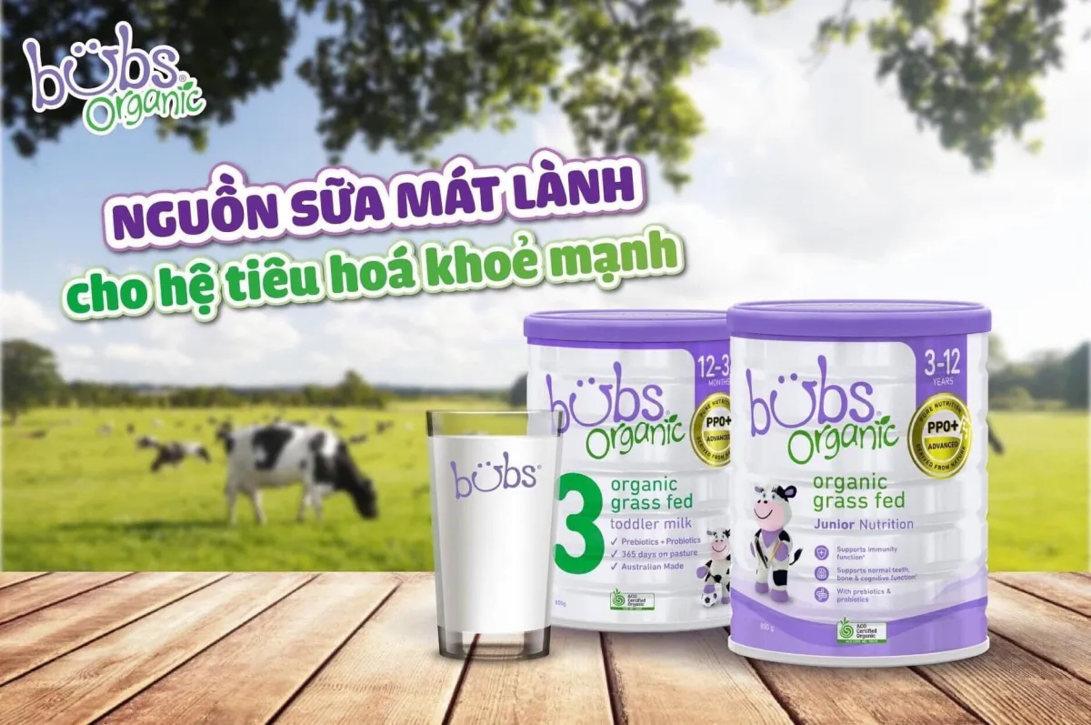 Cũng thuộc thương hiệu Bubs, sữa Bubs Organic Bovine số 3 được sản xuất từ 100% sữa bò ăn cỏ, không chứa chất biến đổi gen hay chất bảo quản. Nhờ vậy, sữa đạt được chứng nhận Organic kép, đảm bảo an toàn cho trẻ từ 12-36 tháng tuổi.