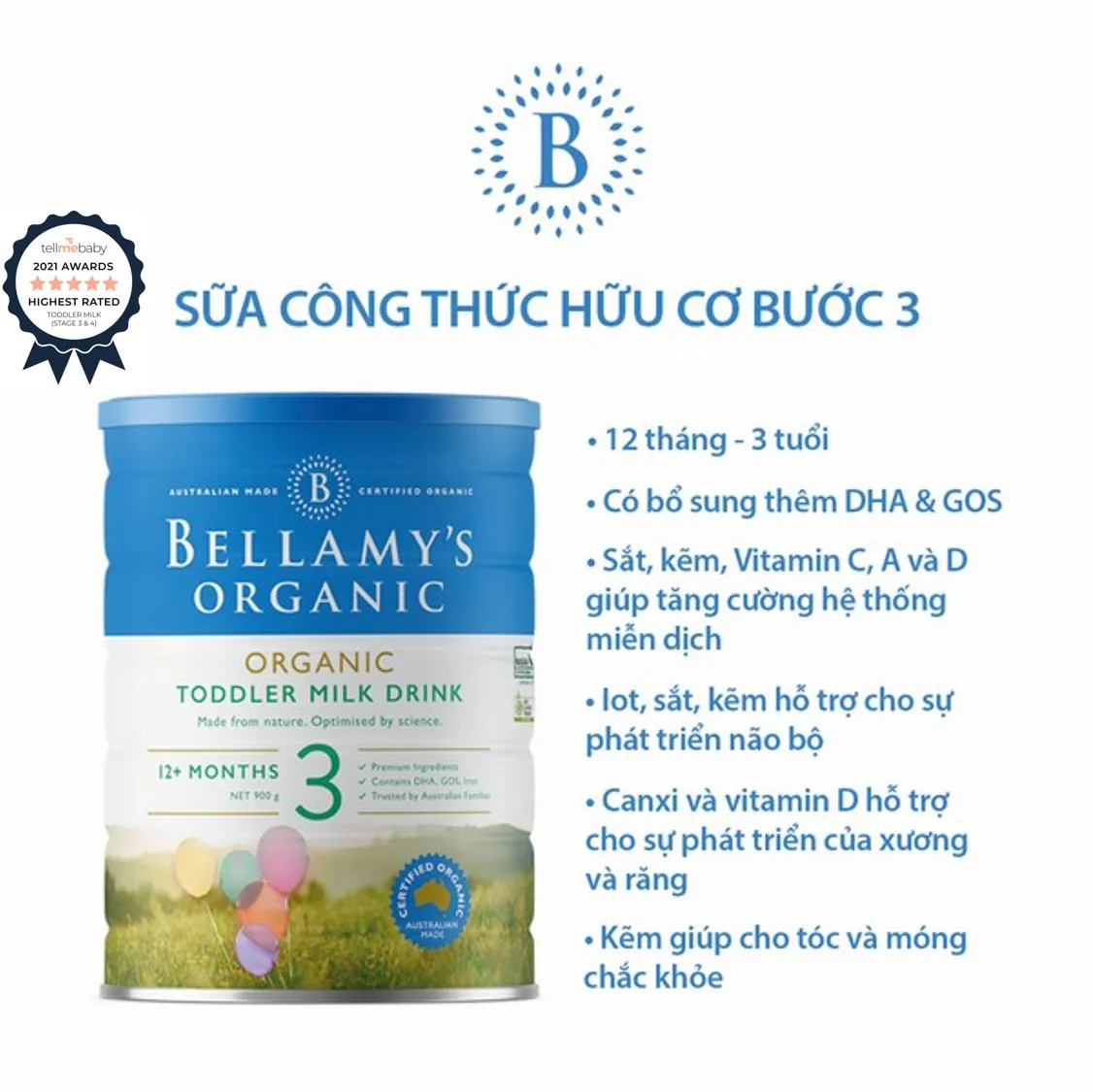 Sữa Bellamy's Organic số 3 có nguồn gốc từ Úc được nghiên cứu dành riêng cho bé từ 1 tuổi trở lên
