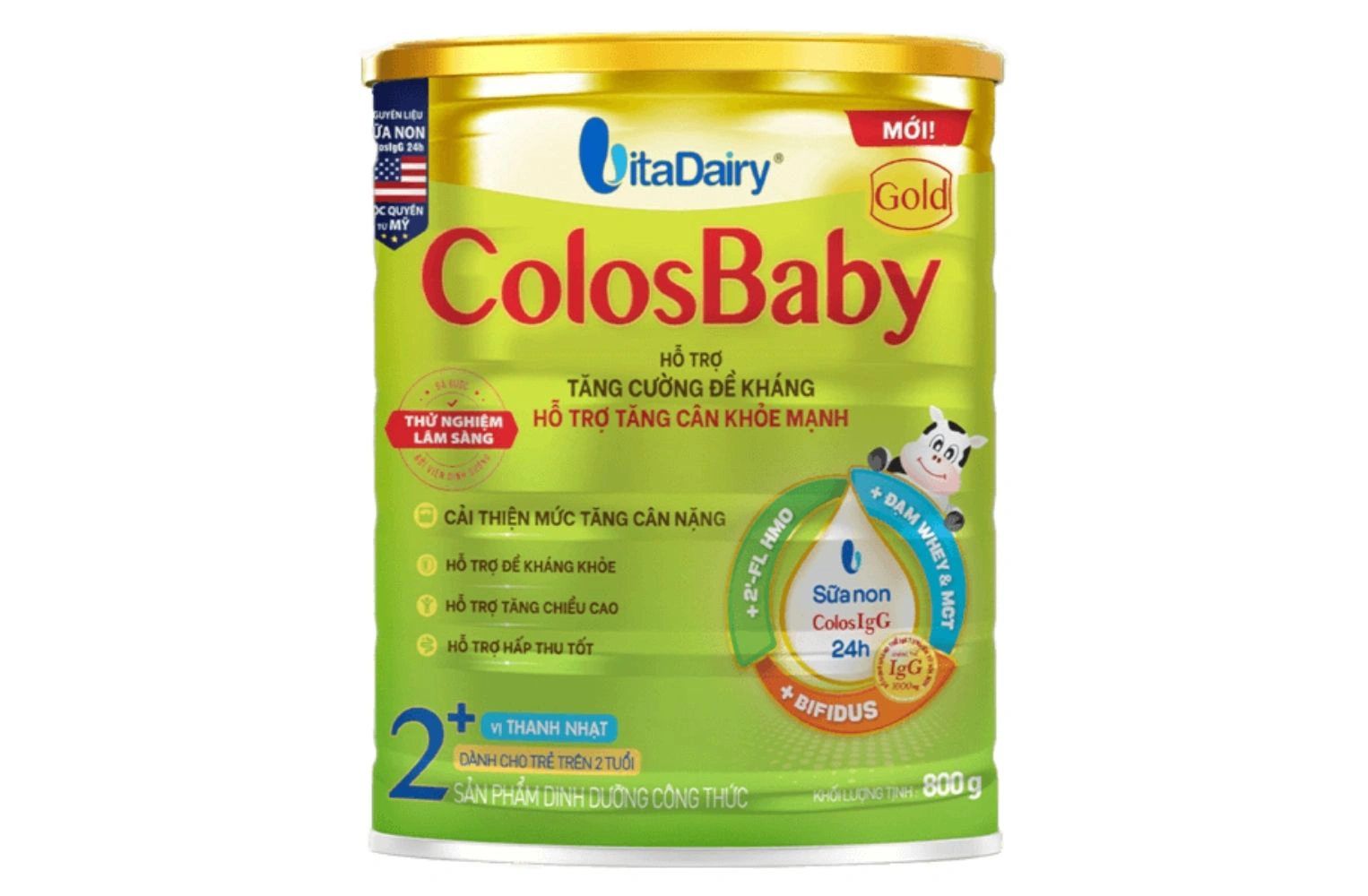 Sữa bột công thức ColosBaby Gold 2+ 800g là lựa chọn dinh dưỡng toàn diện cho bé từ 2 tuổi, với công thức cải tiến từ sữa non ColosIG 24h nhập khẩu Mỹ kết hợp HMO, lợi khuẩn và vi chất thiết yếu giúp bé tăng cường miễn dịch, tiêu hoá khoẻ: