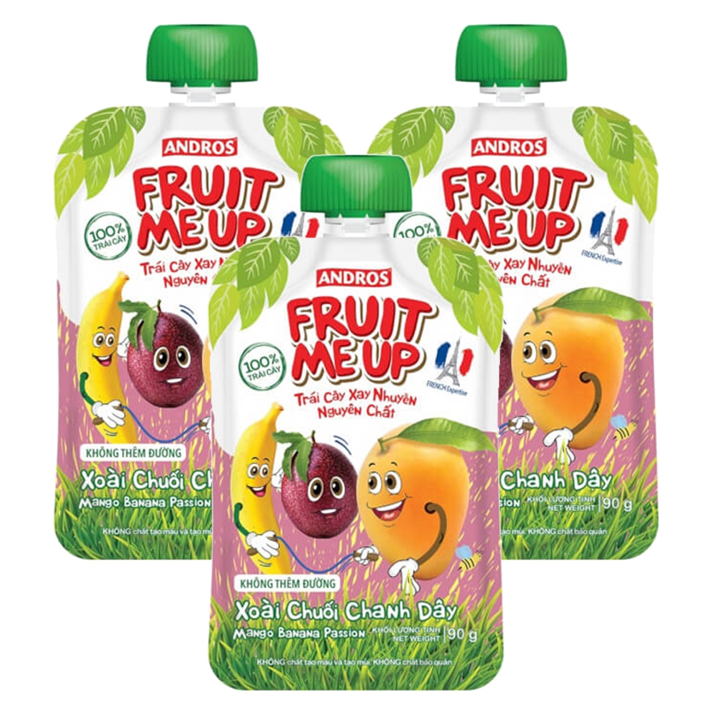 Combo 3 Trái Cây Xay Nhuyễn Nguyên Chất Fruit Me Up Xoài Chuối Chanh Dây
