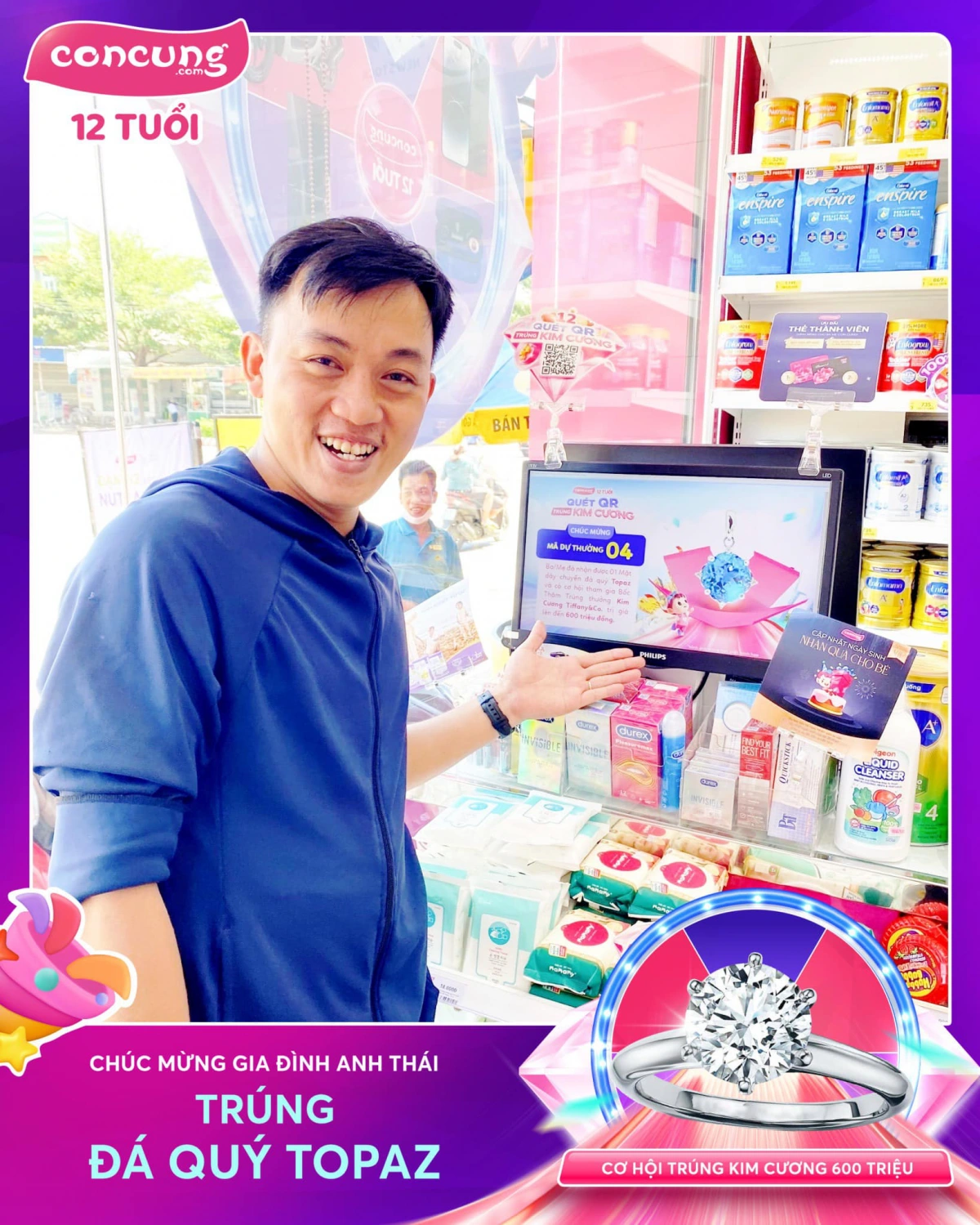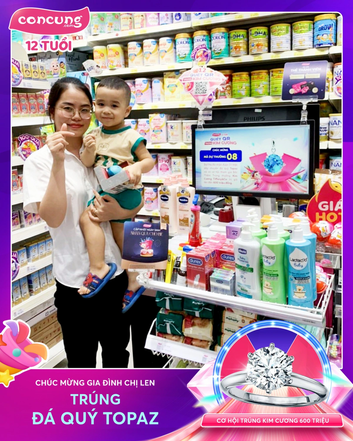 Mừng sinh nhật 12 tuổi, Con Cưng đã khởi động chương trình “QUÉT QR - TRÚNG KIM CƯƠNG” với sự tri ân các ba mẹ đã TIN & YÊU trong suốt thời gian qua. Chương trình đã thu hút hơn 200.000 lượt khách hàng tham dự. Con Cưng xin chúc mừng các khách hàng sau đây đã may mắn trúng giải Mặt dây chuyền đá quý, đồng thời nhận thêm cơ hội tham gia bốc thăm trúng thưởng Kim cương Tiffany & Co trị giá đến 600 triệu đồng: