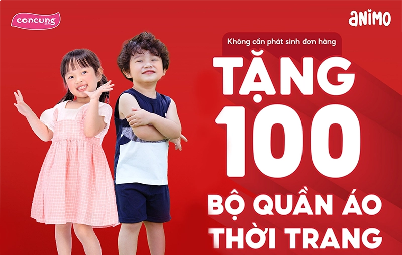 Con Cưng tặng miễn phí 100 bộ quần áo cho 100 khách hàng đầu tiên. Khách hàng không cần phát sinh đơn hàng vẫn được nhận quà. Khách hàng có thể được lựa chọn size, mẫu tuỳ thích thuộc nhóm sản phẩm quần áo thời trang và quần áo sơ sinh.
