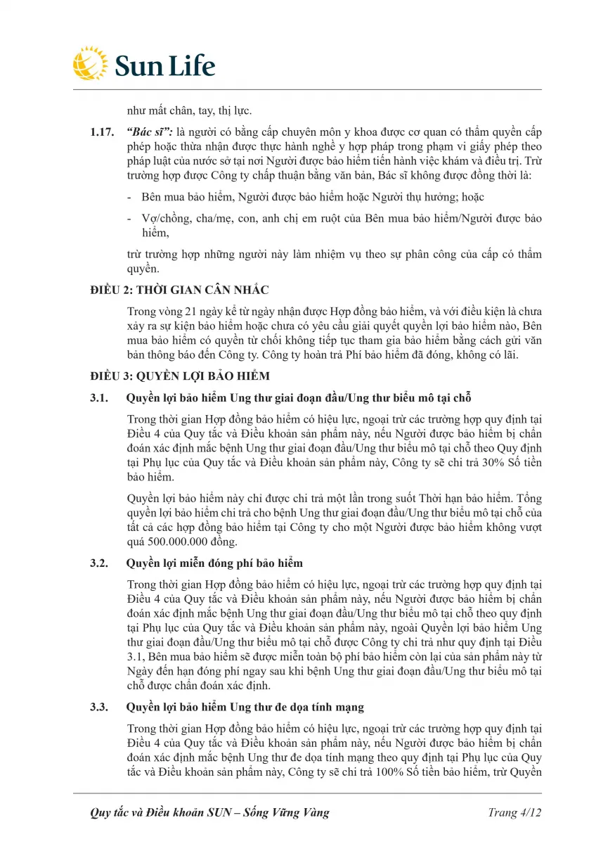 QUY TẮC VÀ ĐIỀU KHOẢN SẢN PHẨM BẢO HIỂM SỨC KHOẺ - BỆNH UNG THƯ
