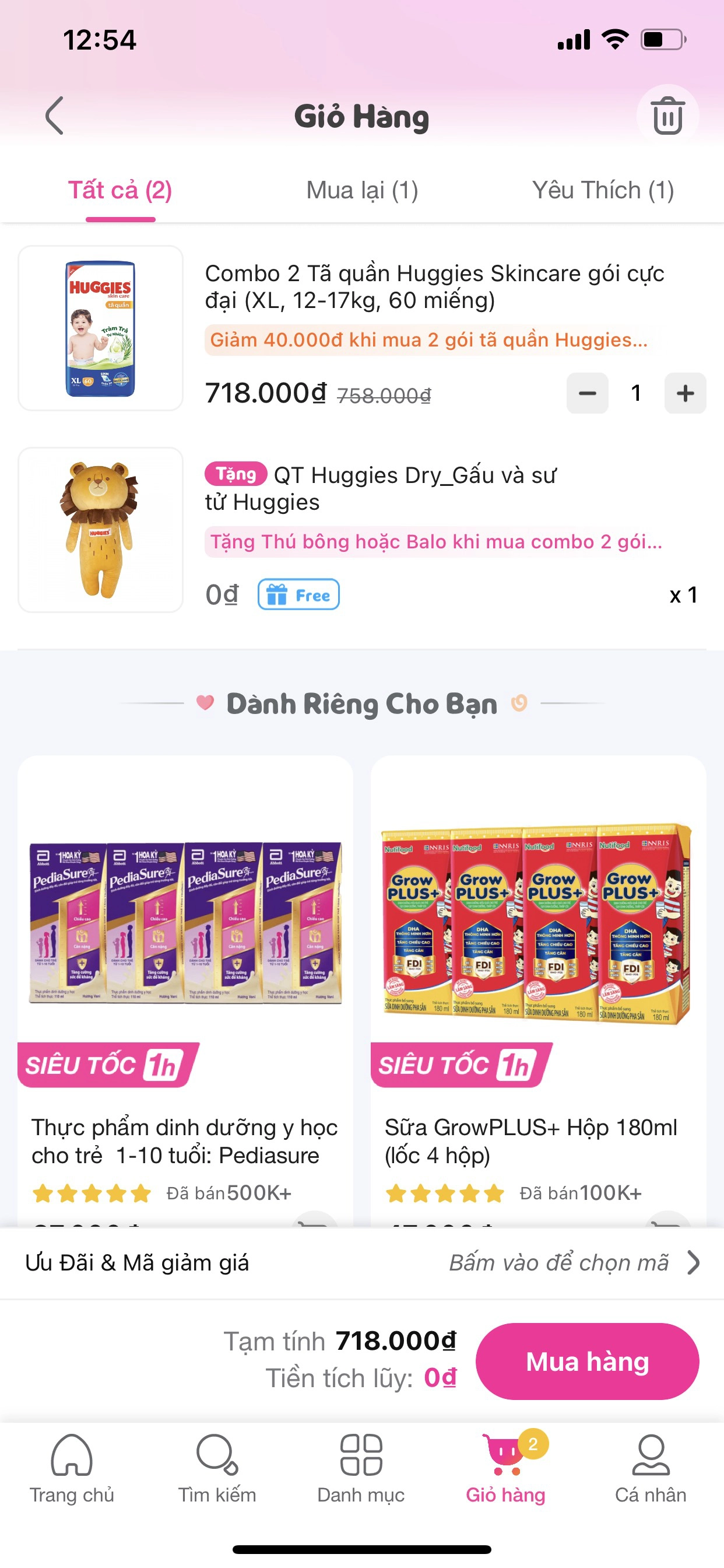 Bước 4: Con Cưng gửi thông báo Mời ba mẹ nhận voucher 50K (Áp dụng khi mua tã Huggies Dry và Skincare)