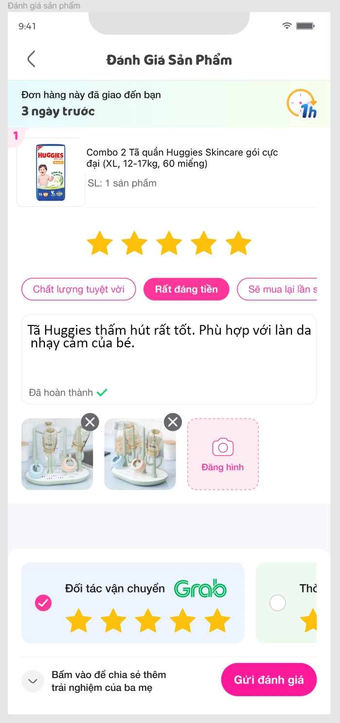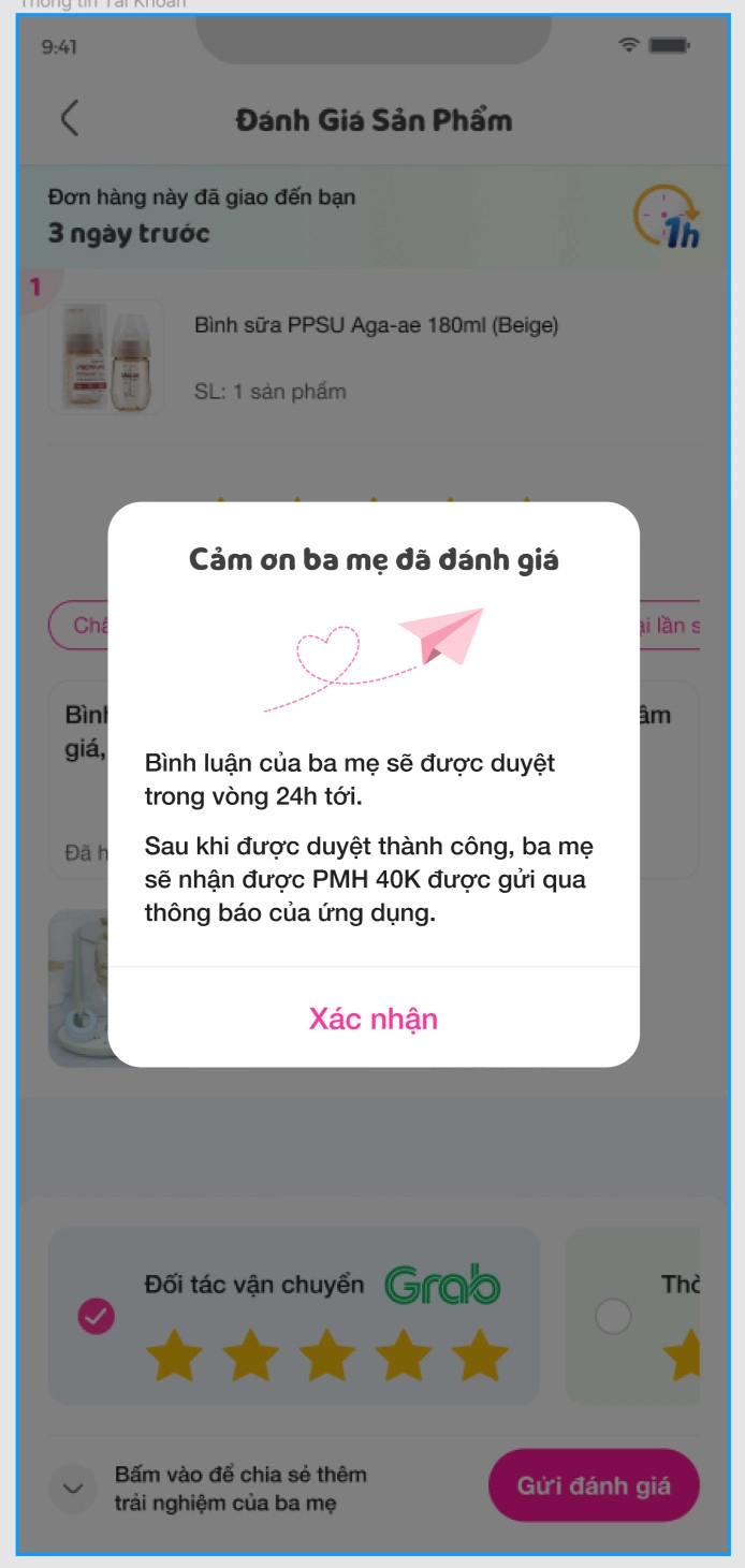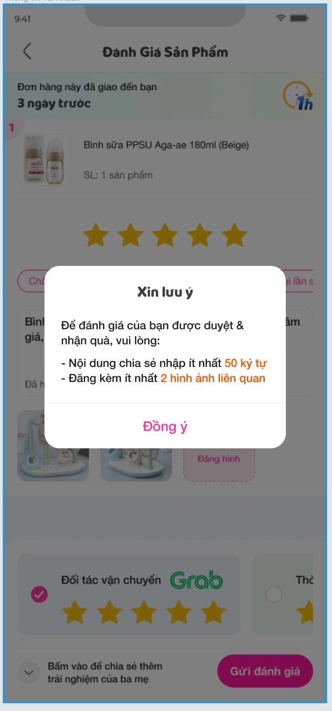 Bước 2: Sau khi đã nhận hàng thành công, Ba mẹ viết đánh giá sản phẩm vừa đặt mua