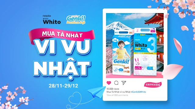 Đây là chương trình khuyến mãi siêu khủng với rất nhiều phần quà hấp dẫn chưa từng có như: Du lịch Nhật Bản 4 ngày 3 đêm dành cho 2 người, phiếu mua hàng tã Genki hoặc Whito trị giá 5.000.000 đồng,... Ba mẹ chỉ cần mua tã Genki/Whito với tổng giá trị đơn hàng từ 500.000đ là đã có ngay một lượt quay may mắn trúng quà. Chương trình diễn ra từ 28/11 – 29/12/2022! Mời ba mẹ tìm hiểu thêm chi tiết ngay dưới đây!