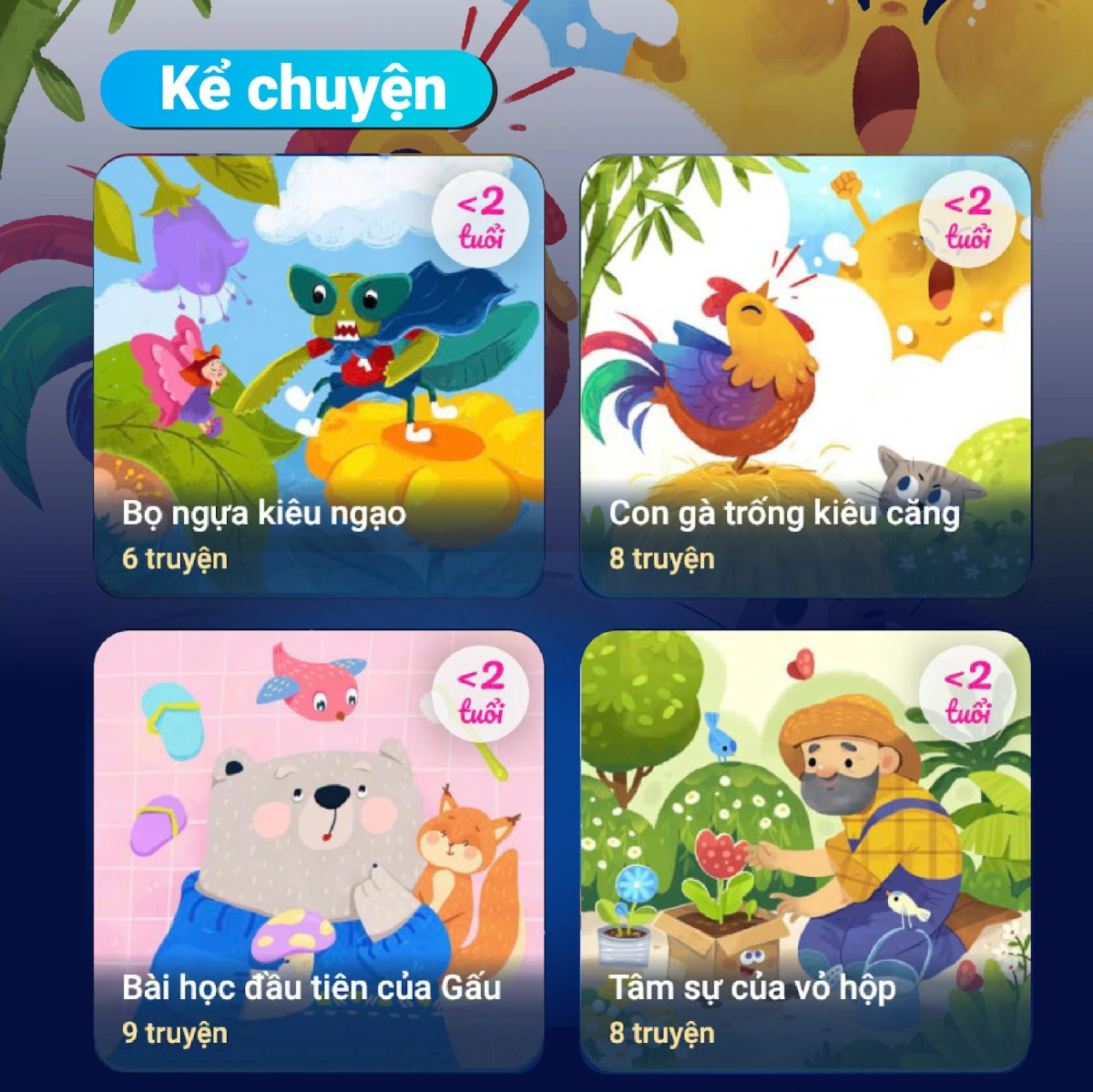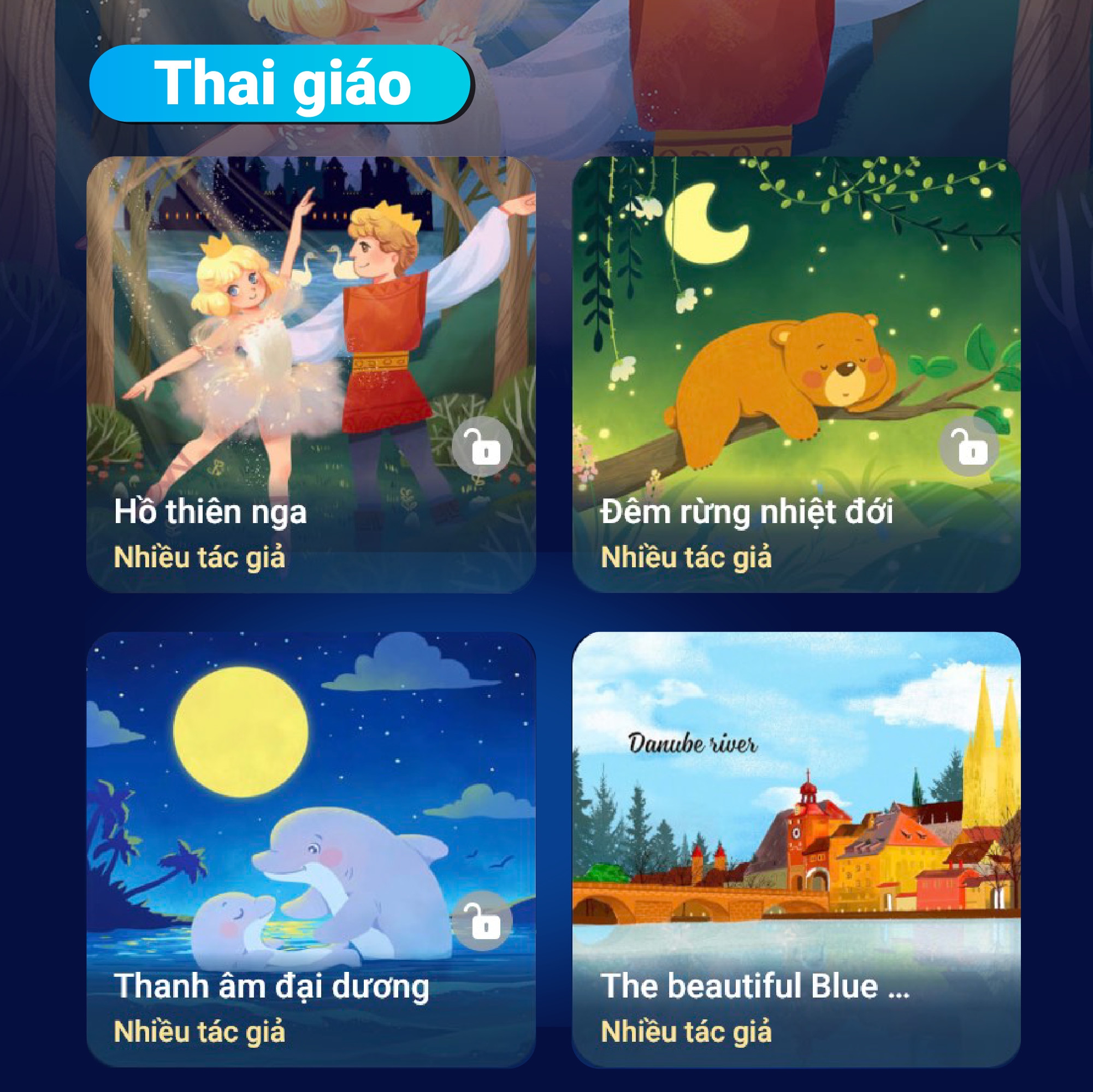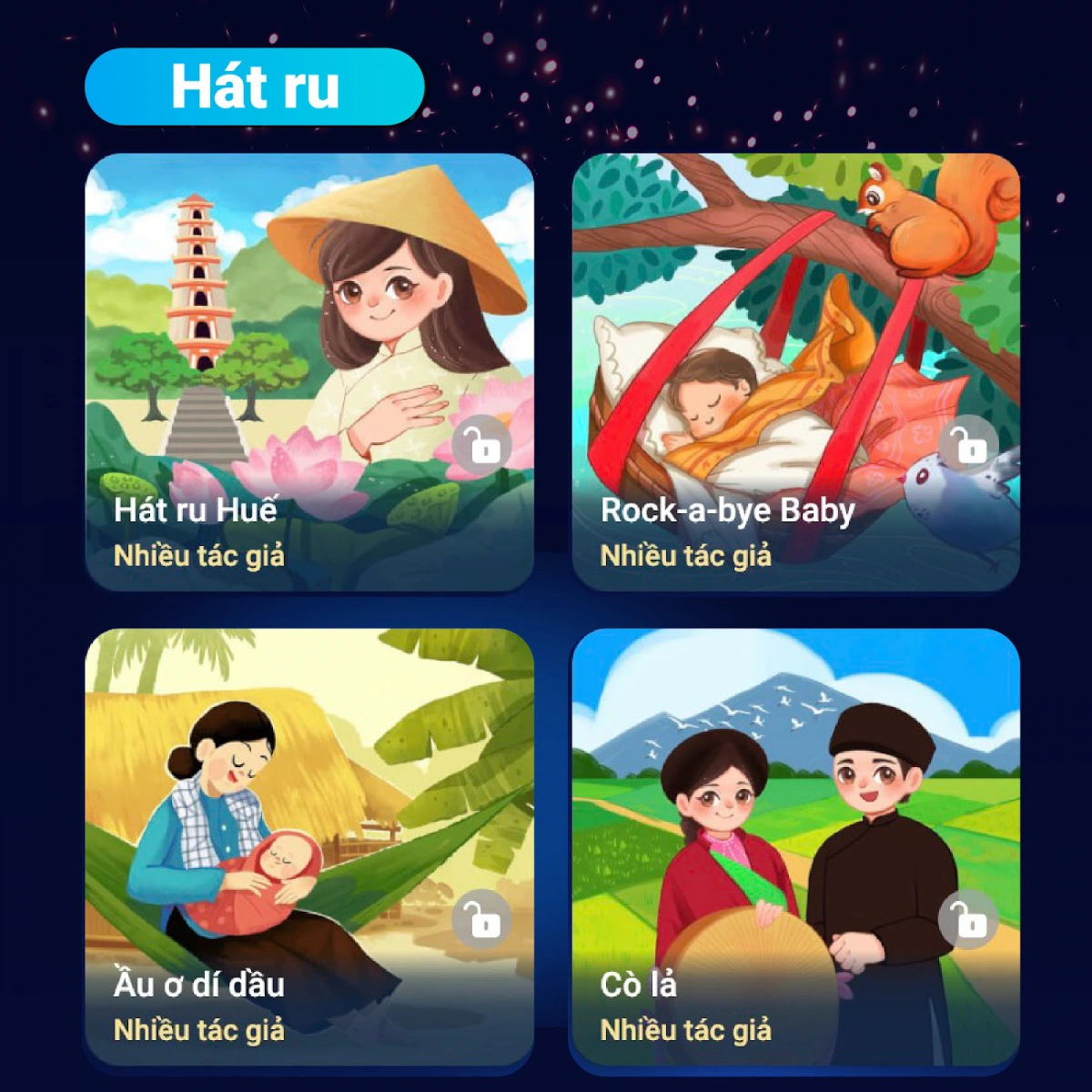 Kho truyện kể đa dạng với rất nhiều thể loại khác nhau được tuyển chọn/biên tập kỹ càng. Các giọng đọc truyền cảm, giàu kinh nghiệm cùng với hiệu ứng âm thanh đạt chuẩn giúp bé dễ dàng chìm vào giấc ngủ.