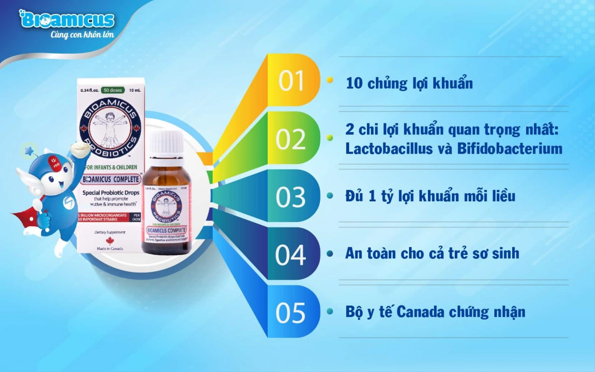 Trên đây là 3 lý do men vi sinh 10 chủng BioAmicus Complete được tin dùng tại 30 quốc gia trên thế giới, trong đó có Việt Nam. Hy vọng với thông tin mà Con Cưng tổng hợp được, ba mẹ sẽ có thêm cái nhìn tổng quan hơn về dòng sản phẩm men vi sinh cho bé đến từ đất nước Canada này.